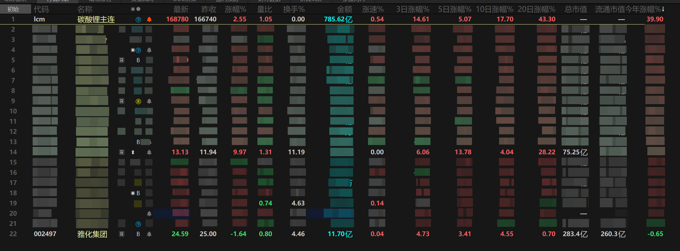 曰了苟了看了看自选,最差竟然是雅化开年负涨幅!!!和碳酸锂指数差距40.5%!!
