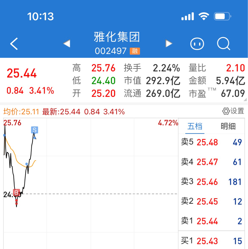 $雅化集团(SZ002497)$ 手滑买成2次,吓坏宝宝了,不贪见好就收,下班……