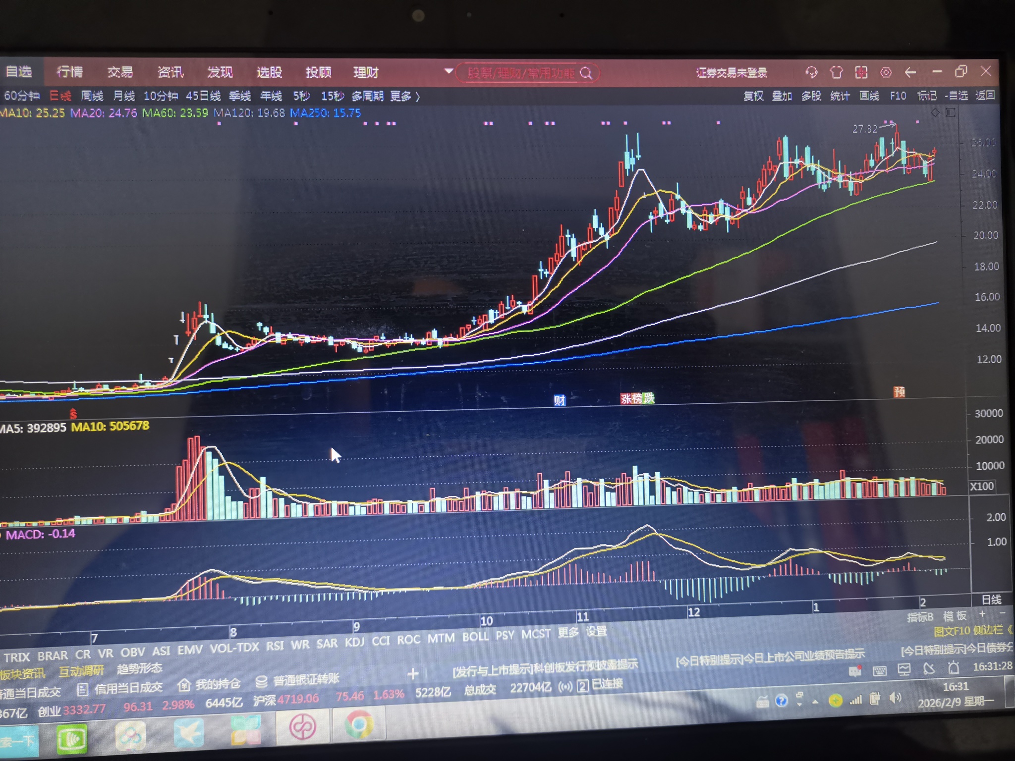 日k线很像抬头。今日比盛新锂能走的也好些。如果明日能放量向上就是过年红包了。还得