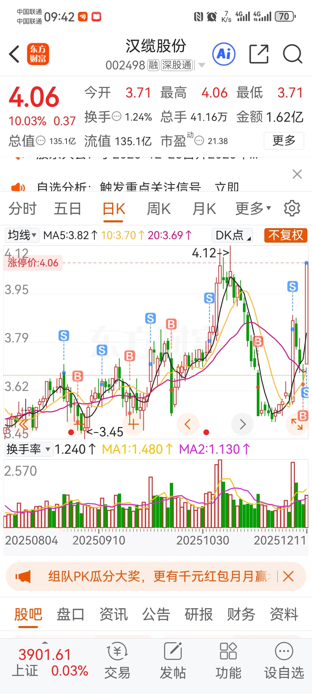 $汉缆股份(SZ002498)$ 走了,走了,留下的发财!!!