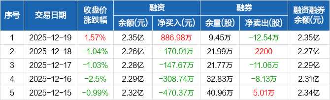 汉缆股份:融资净买入886.98万元,融资余额2.35亿元(12-19)