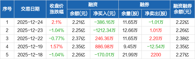 汉缆股份:融资净偿还386.16万元,融资余额2.21亿元(12-24)