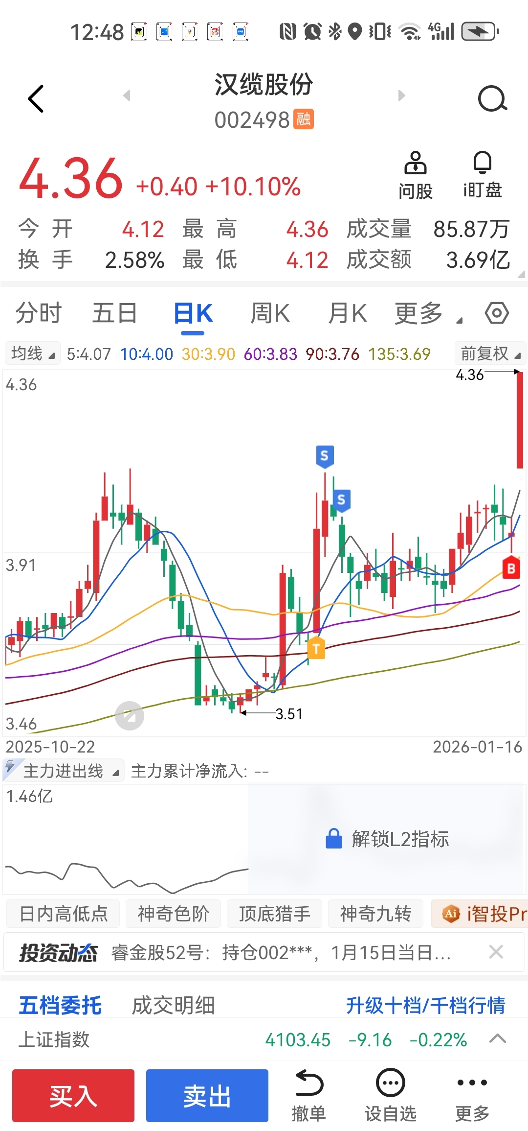 $汉缆股份(SZ002498)$ 昨天水下买了50个
