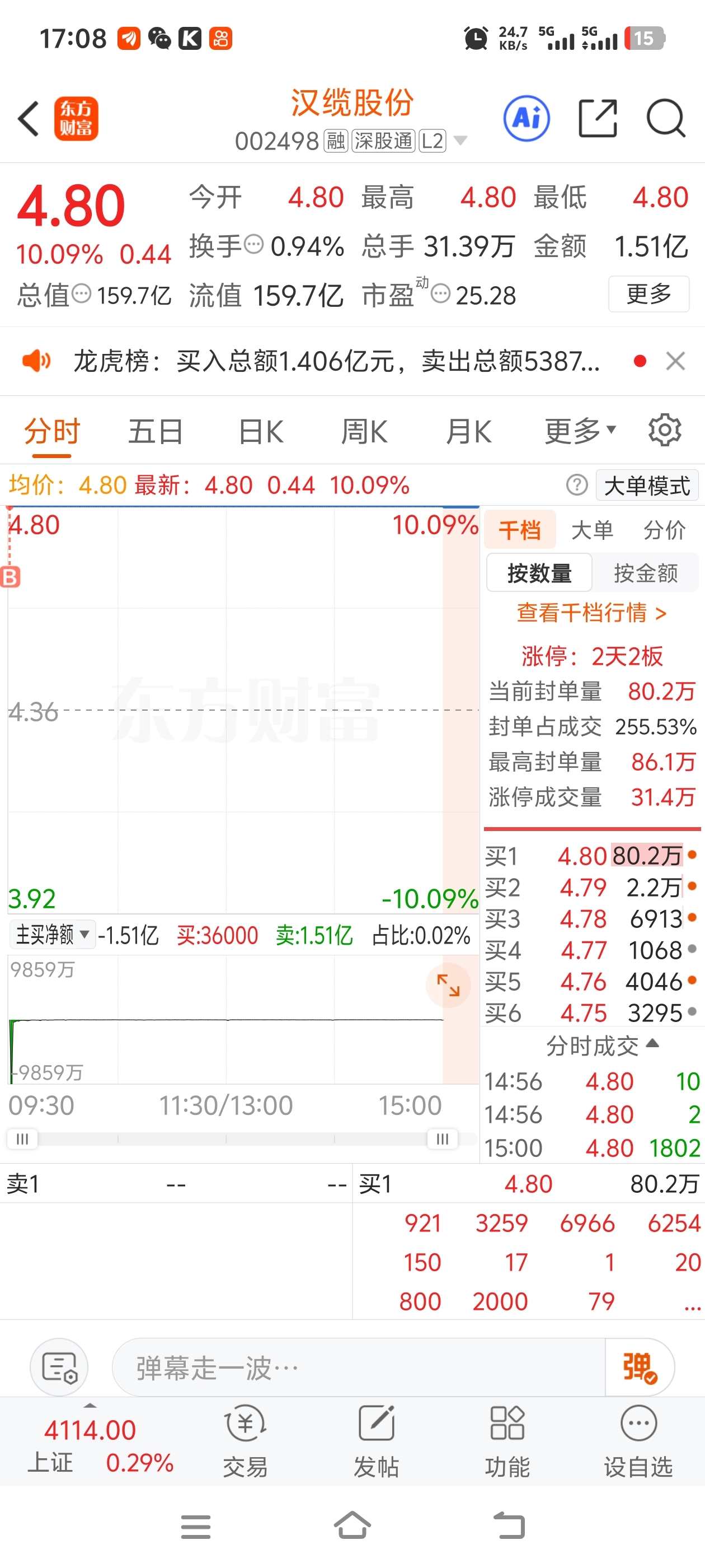 $汉缆股份(SZ002498)$ 早上集合竞价成交了多少?怎么我买进去了?