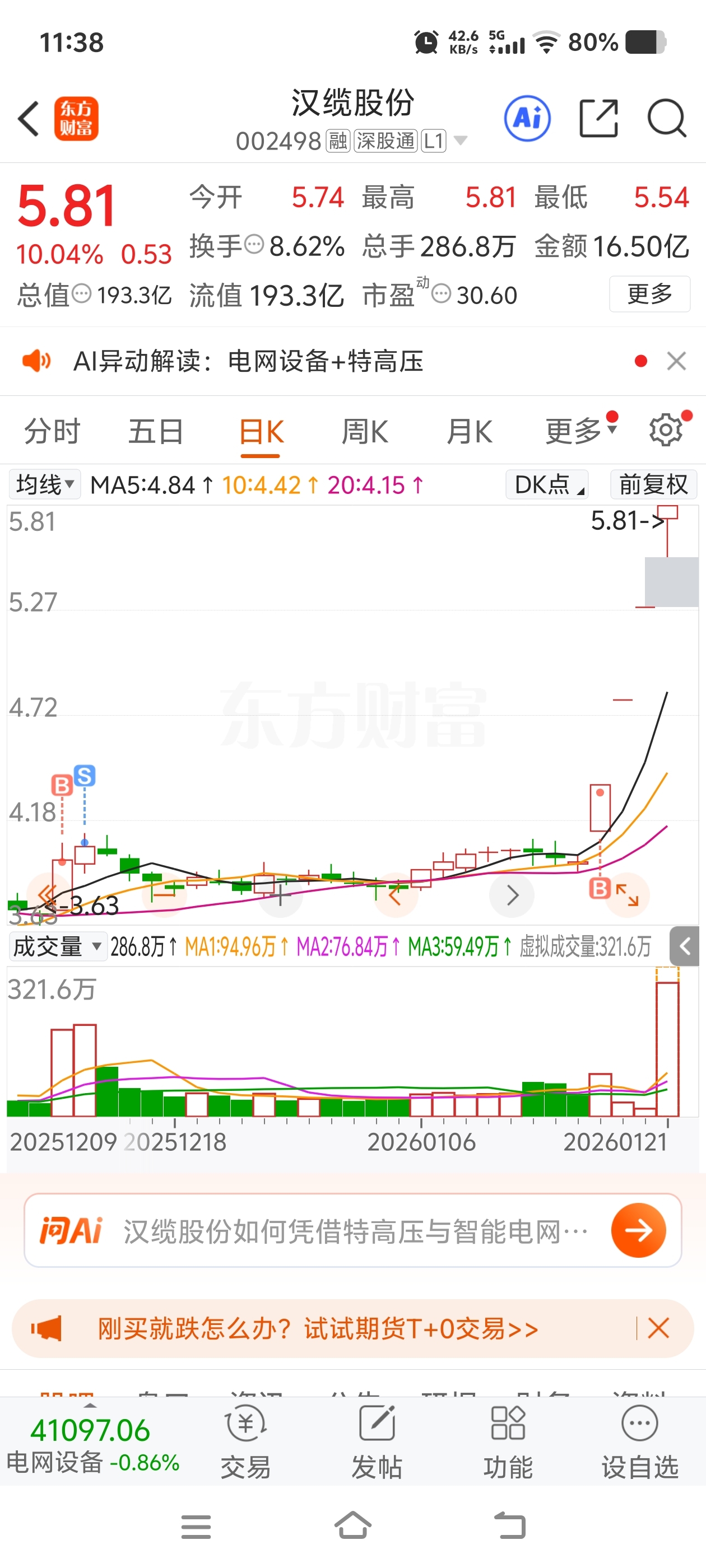$汉缆股份(SZ002498)$ 明天第五板动几下吧,再封板真关进小黑屋了