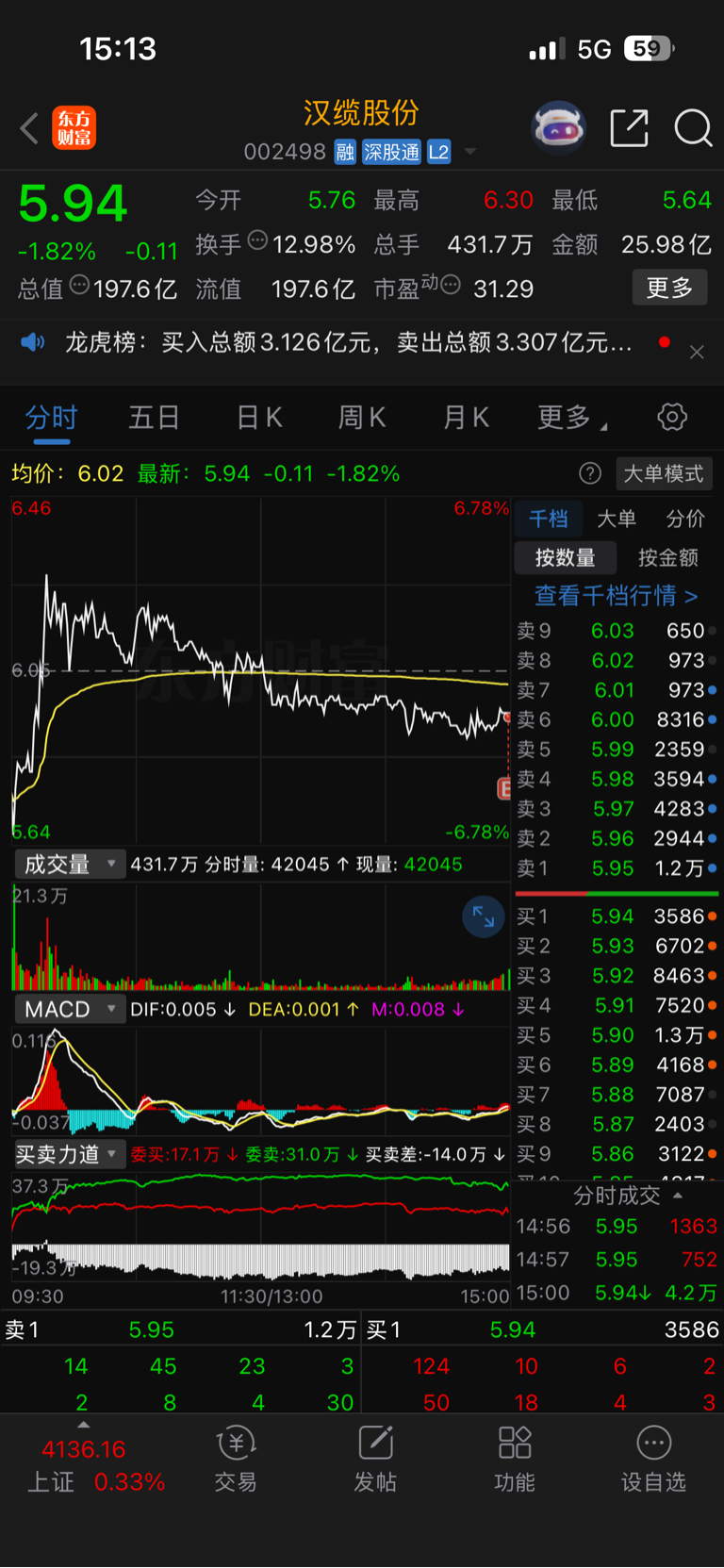 $汉缆股份(SZ002498)$ 管不住手,空仓不了,感觉周一还要洗