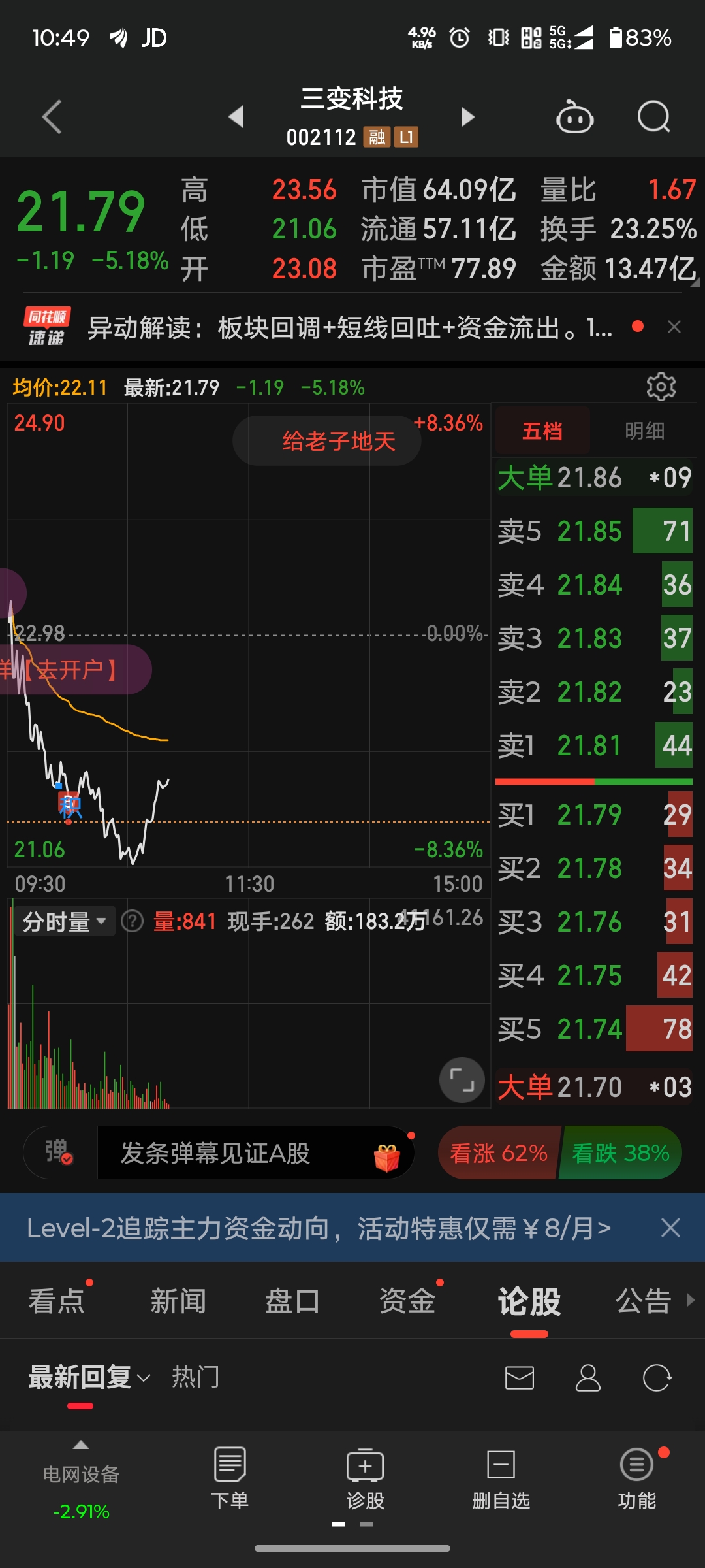温馨提示: 1.根据《证券法》规定,禁止编造、传播虚假信息或者误导性信息,扰乱证券市场;2.用户在本社区发表的所有资料、言论等仅代表个人观点,与本网站立场无关,不对您构成任何投资建议。用户应基于自己的独立判断,自行决定证券投资并承担相应风险。《东方财富社区管理规定》