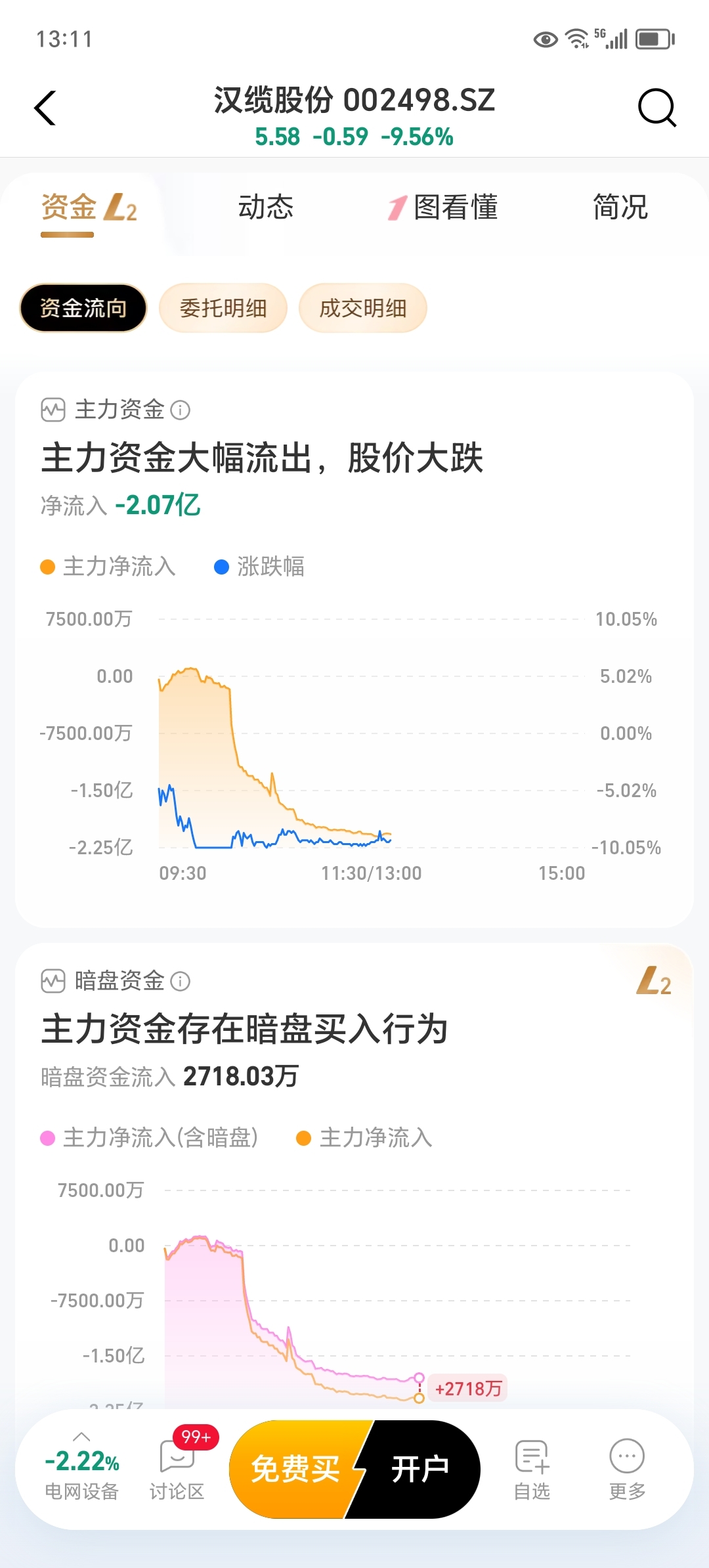$汉缆股份(SZ002498)$ 资金流出2亿,不过暗盘主力吃进3千万,看样子明天有修复,或许大惊喜。