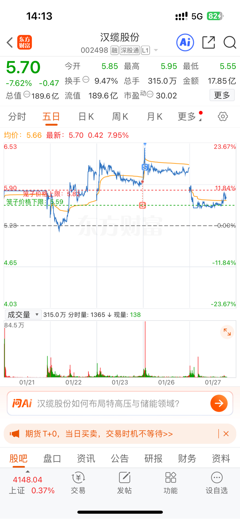 $汉缆股份(SZ002498)$ 深蹲反弹