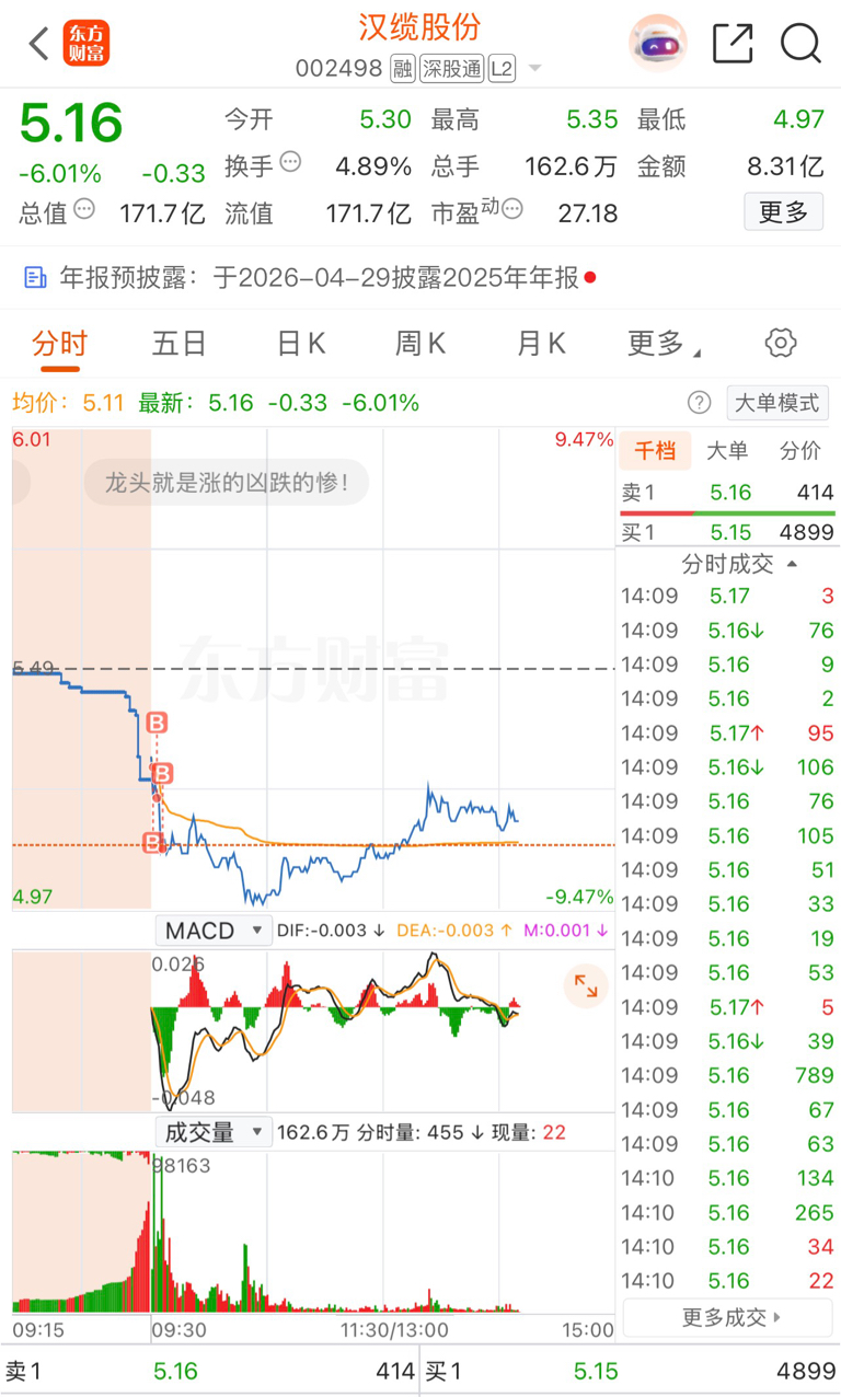 $汉缆股份(SZ002498)$ 买早了