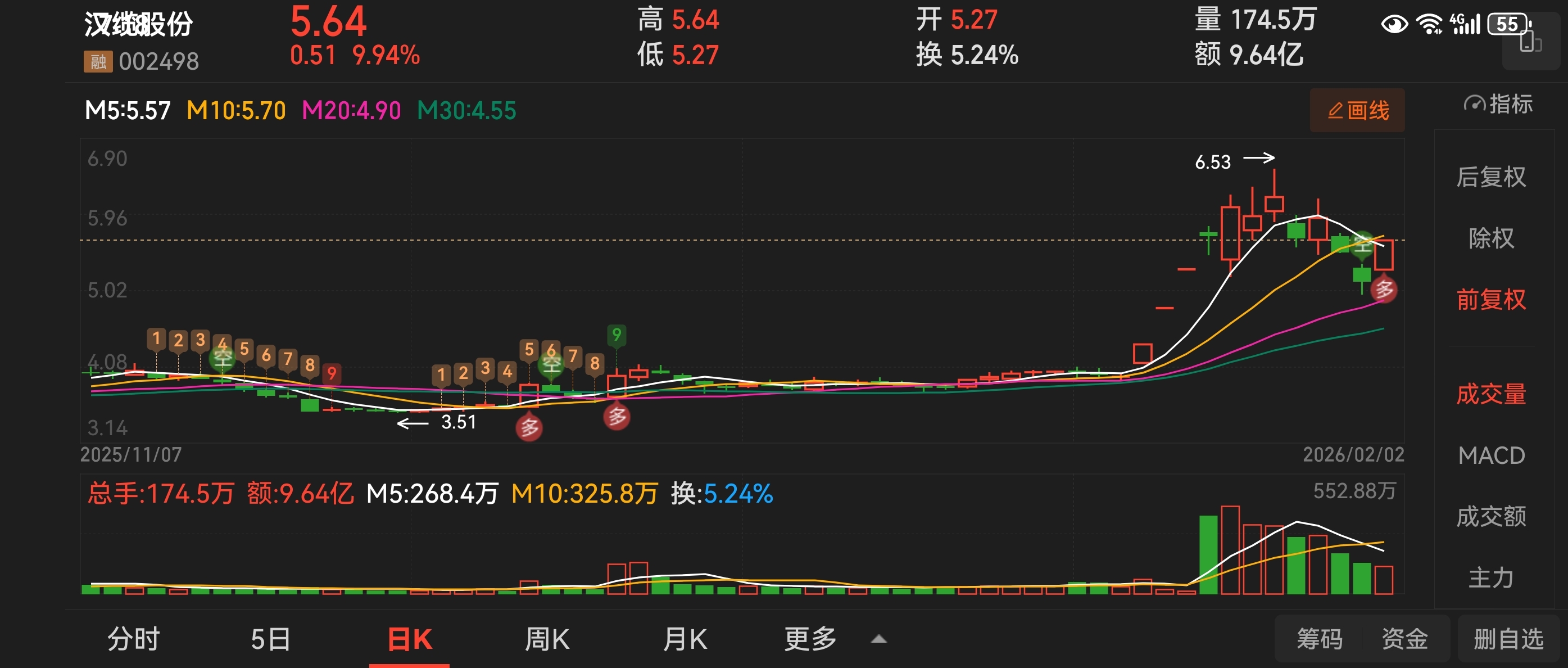 关注汉缆股份三浪行情
