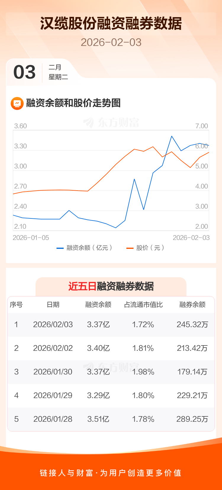 交易所最新数据显示,汉缆股份于2026年2月3日获融资买入1.53亿元,融资偿还1.57亿元,当日融资净偿还331.26万元。目前,该股融资余额3.37亿,占流通市值比例为1.72%。