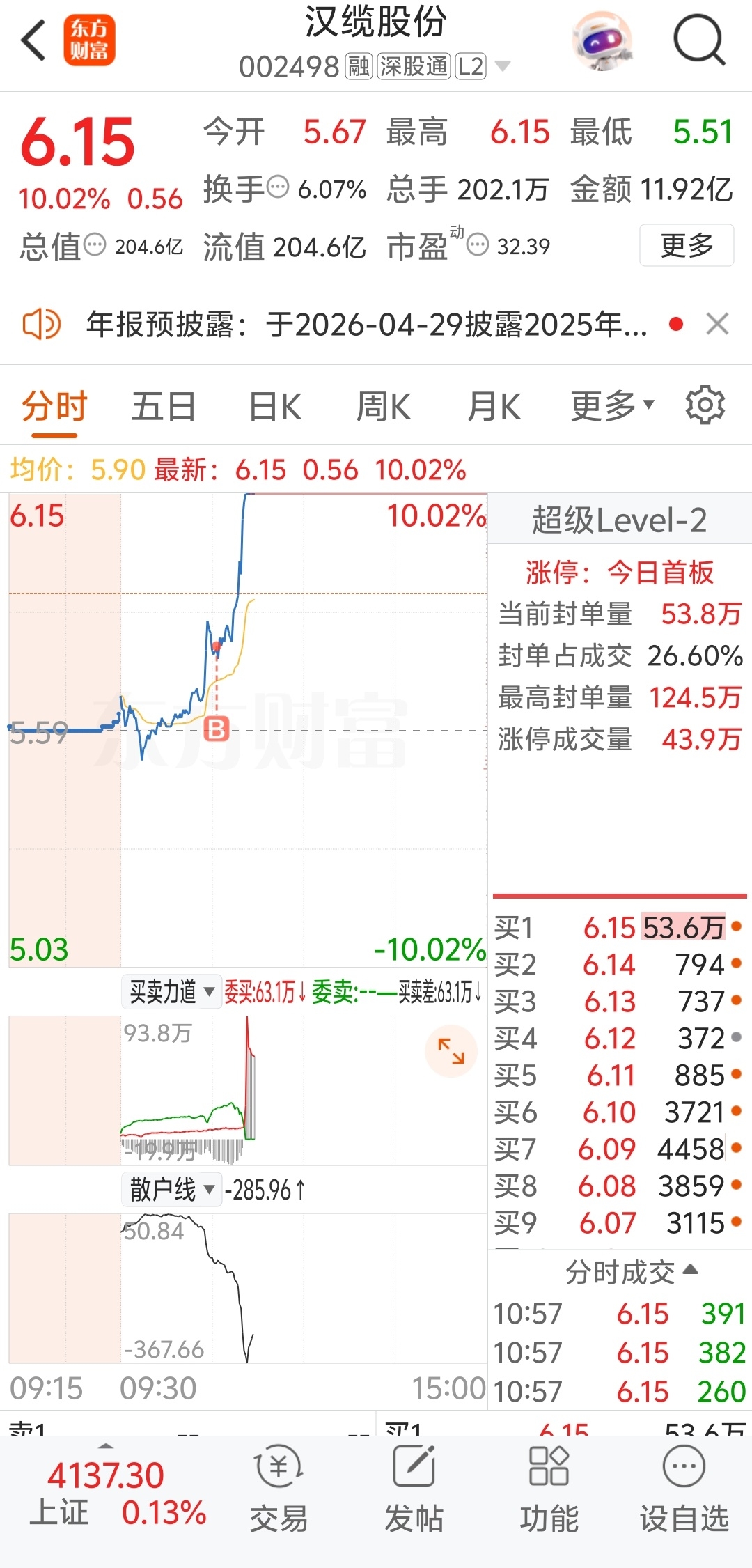 $汉缆股份(SZ002498)$ 前几天被你气的减仓了