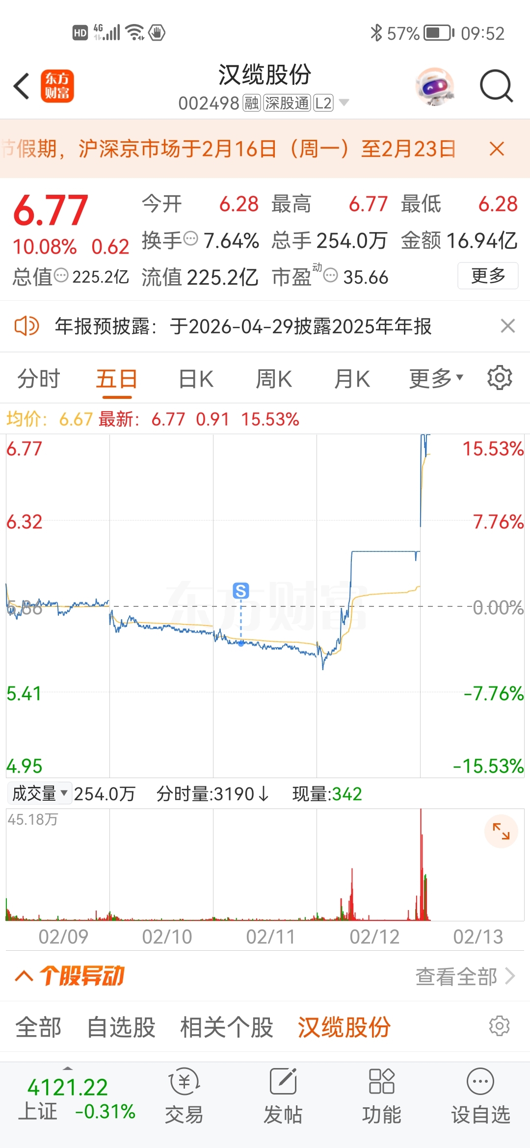 $汉缆股份(SZ002498)$ 每次都能完美错过
