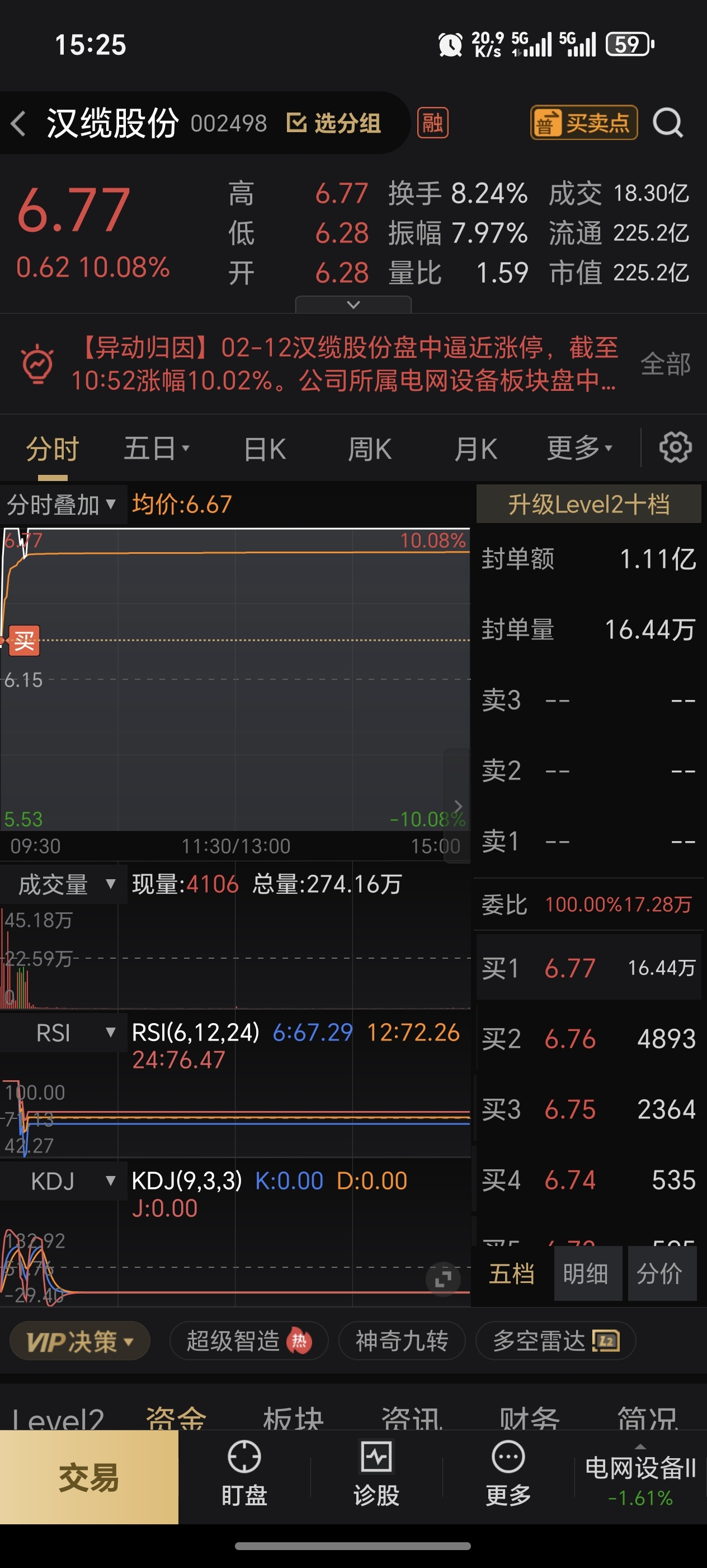 $汉缆股份(SZ002498)$ 很难买吗?看我的排单