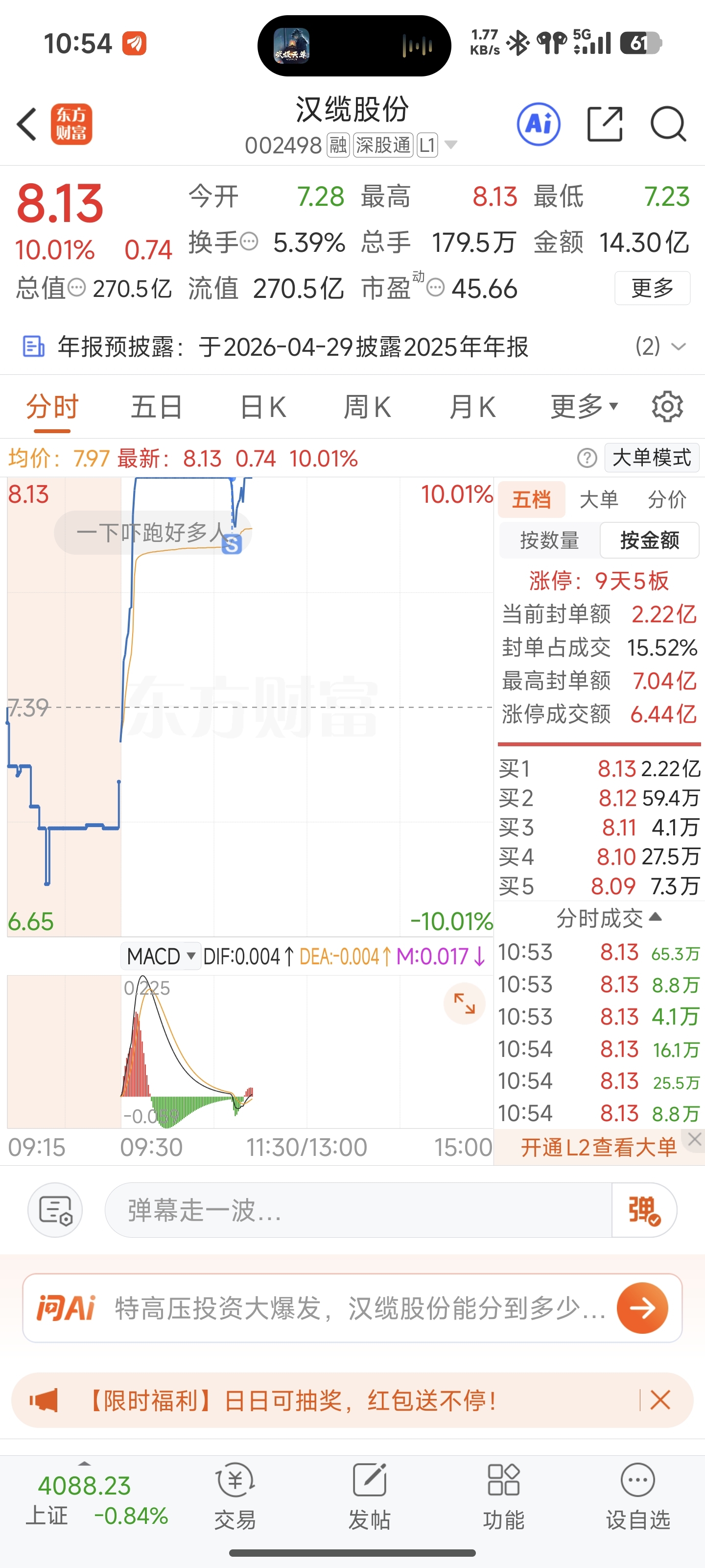 $汉缆股份(SZ002498)$ 最后一秒走了,不玩了