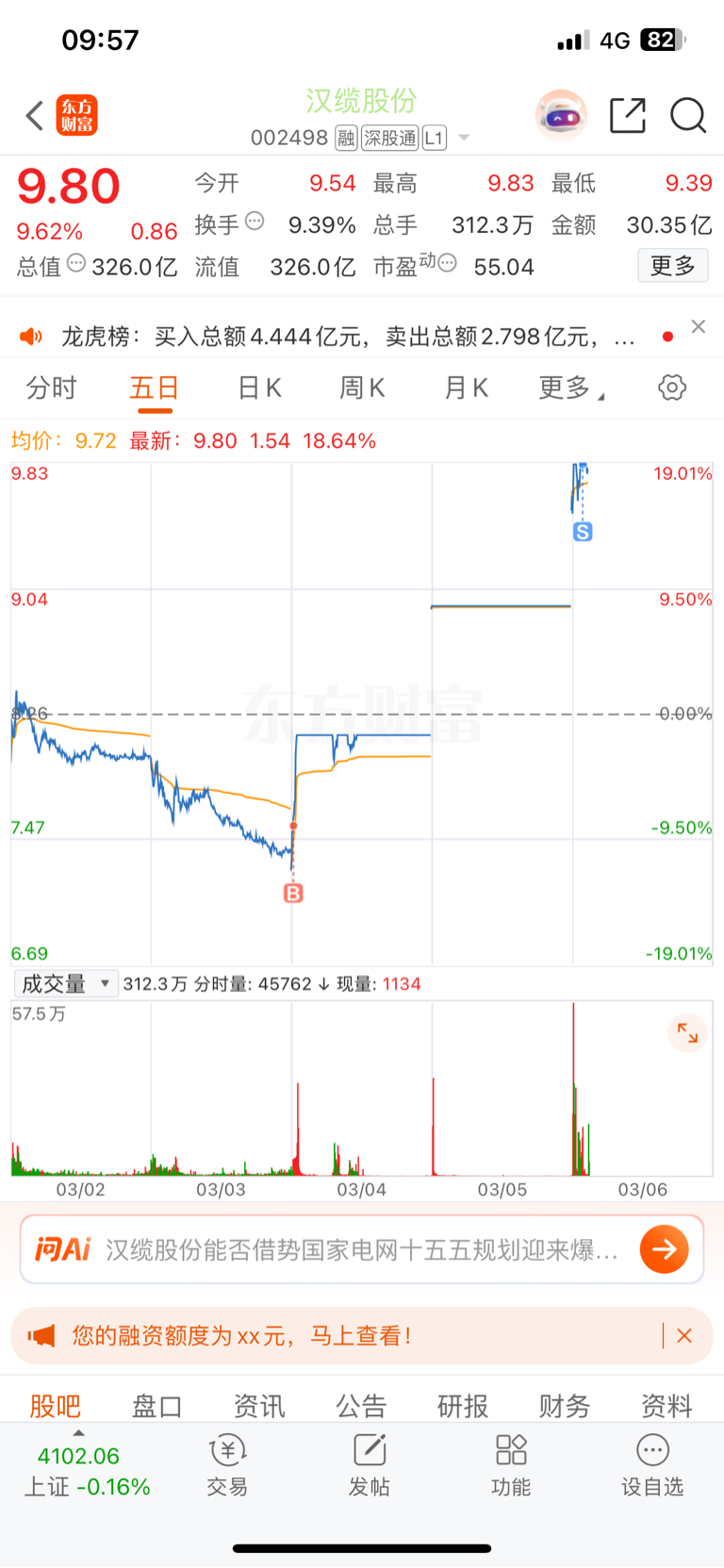 $汉缆股份(SZ002498)$ 卖飞了