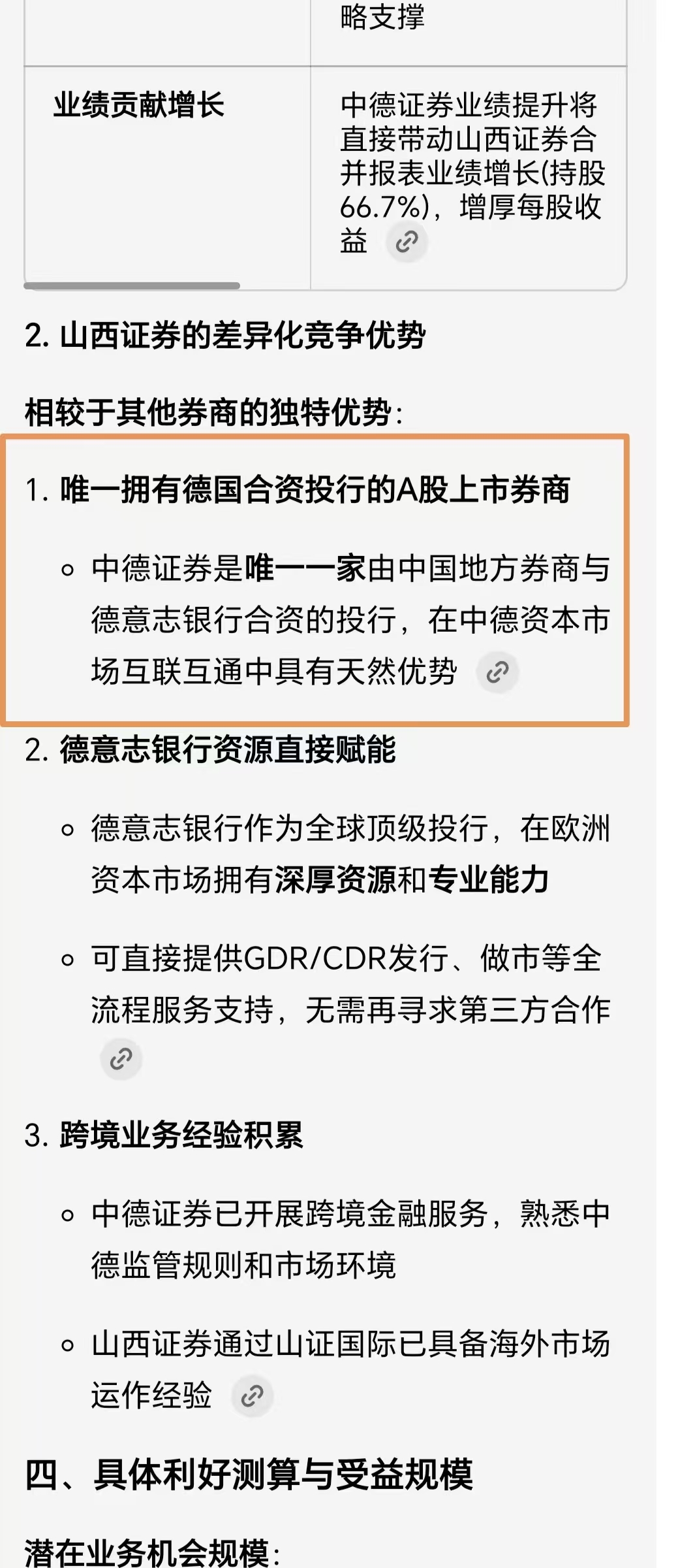 $山西证券(SZ002500)$ 山西证券市净率1.2,业绩增幅37.34%,市盈率24.87,估值适中,本来并没有太大特色,这次中德的金融合作, 山西证券是唯一一家与德国德意志银行合作的券商,且持有66.7%的中德证券,这个突发消息,对山西证券构成利好。