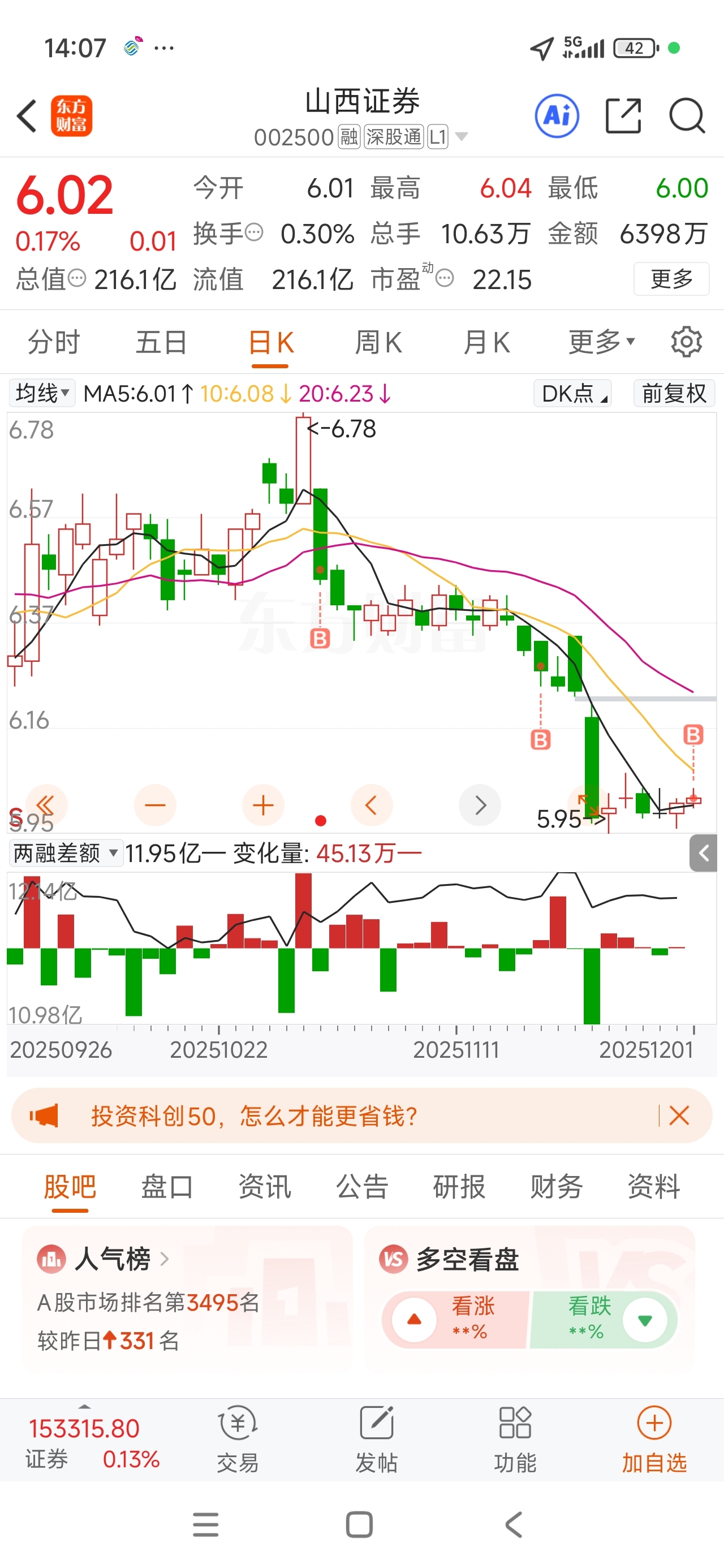 $山西证券(SZ002500)$ 今天抄底一万股