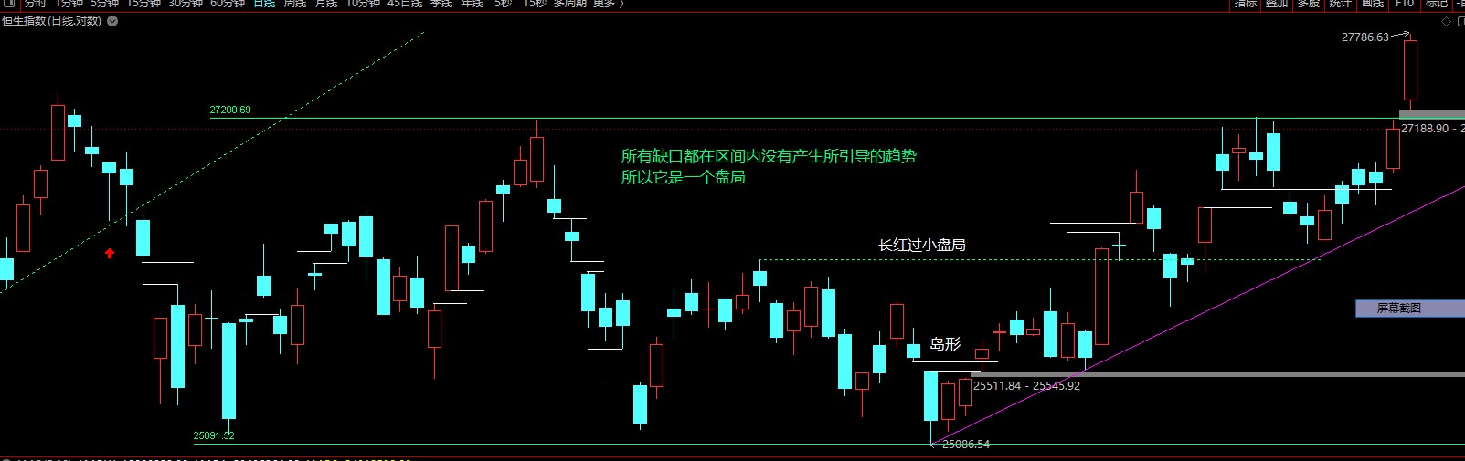 恒生若收盘留缺口是跳空过盘局,走大牛