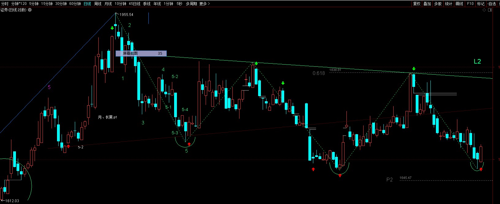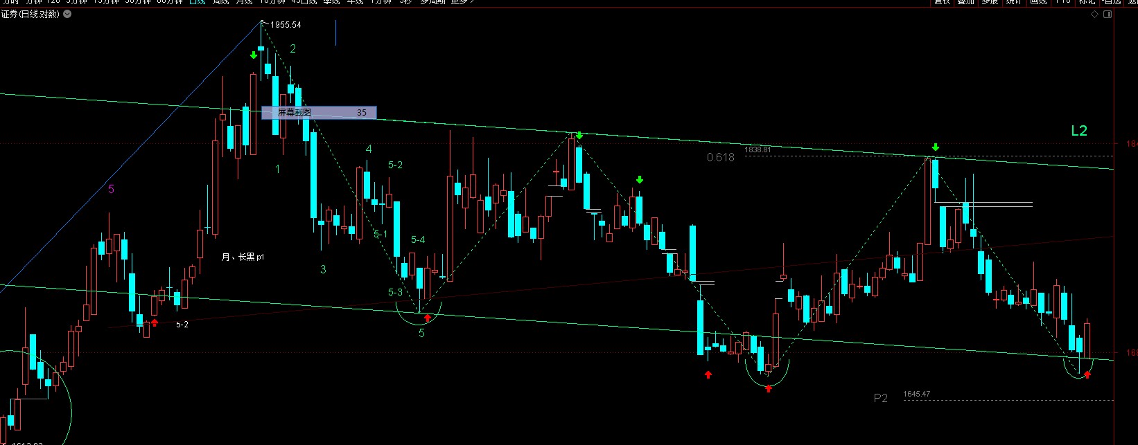 证券:左右两低点在平行线内,所以它是一个颈线微下倾的头肩底形态雏形。