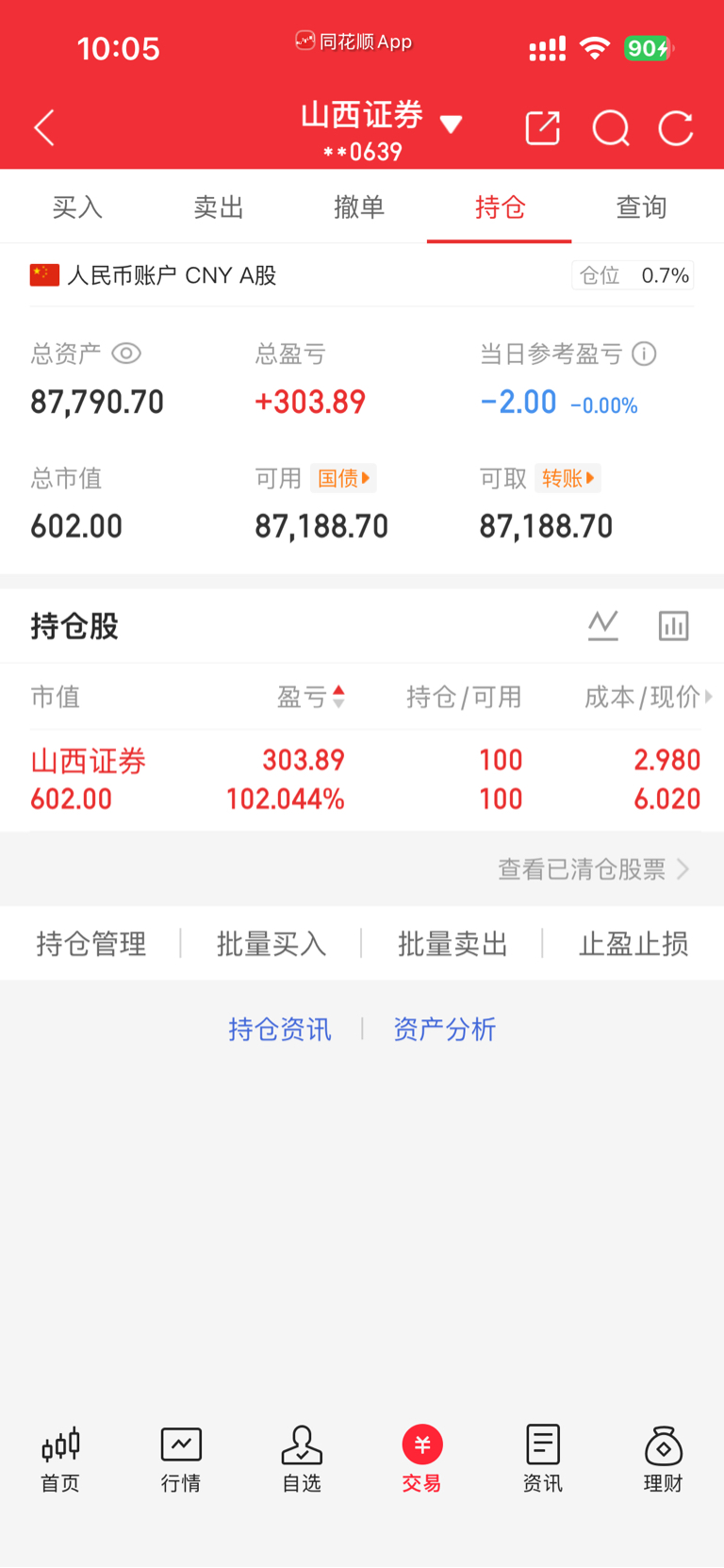 $山西证券(SZ002500)$ 留一手放着吧,不亏就行,等到大盘调整到4050左右,这货估计回到5.7再买