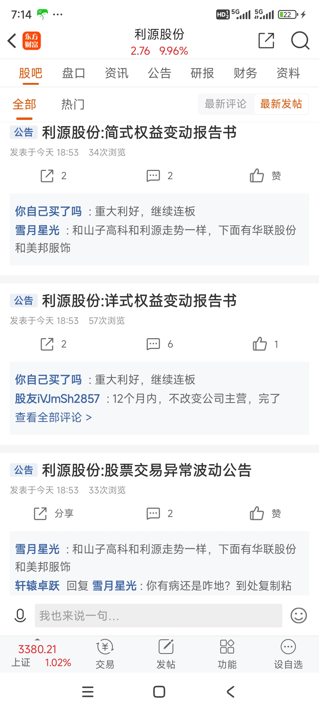 温馨提示: 1.根据《证券法》规定,禁止编造、传播虚假信息或者误导性信息,扰乱证券市场;2.用户在本社区发表的所有资料、言论等仅代表个人观点,与本网站立场无关,不对您构成任何投资建议。用户应基于自己的独立判断,自行决定证券投资并承担相应风险。《东方财富社区管理规定》