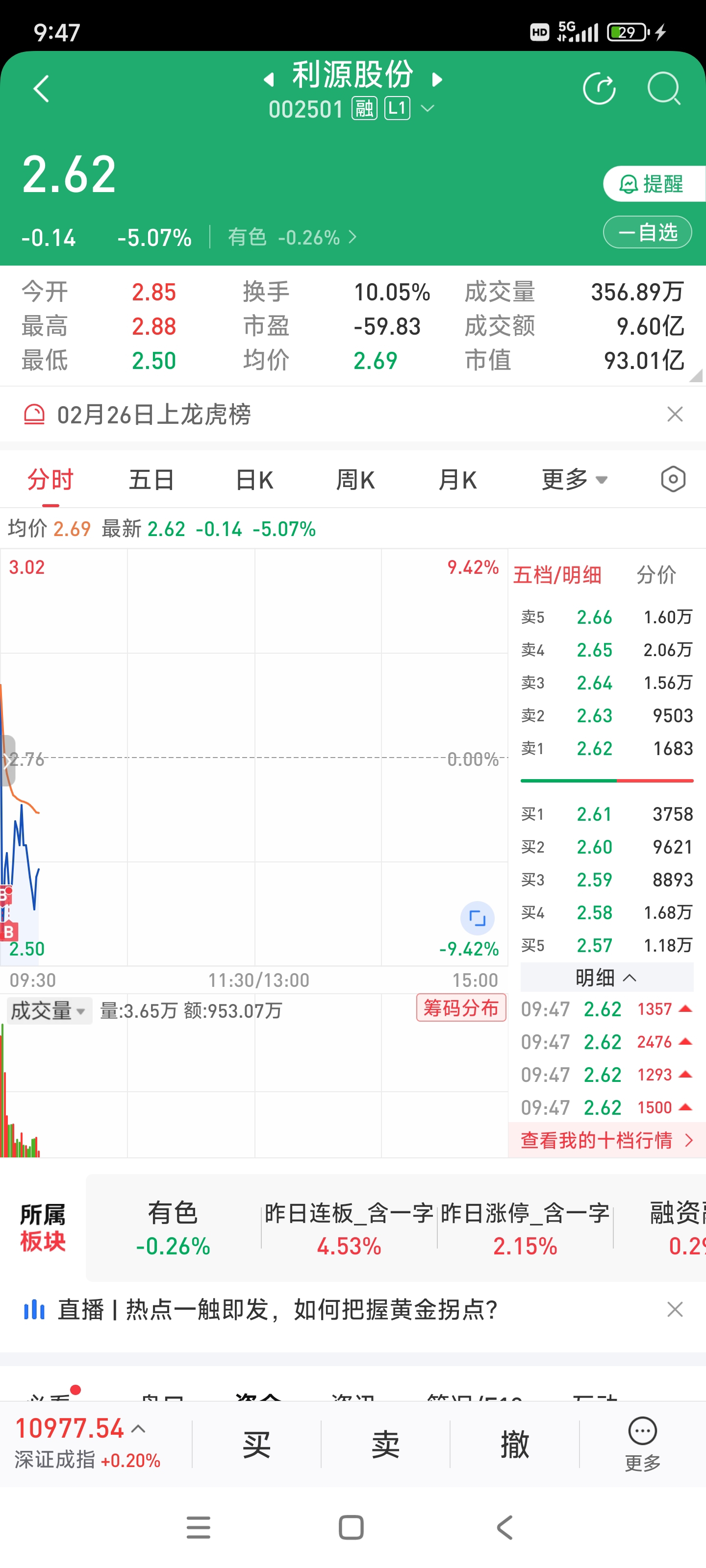 岩山平盘出,入了利源股份,可能会亏损,但就是想买入看下。