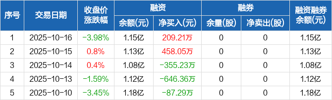 利源股份:融资净买入209.21万元,融资余额1.15亿元(10-16)