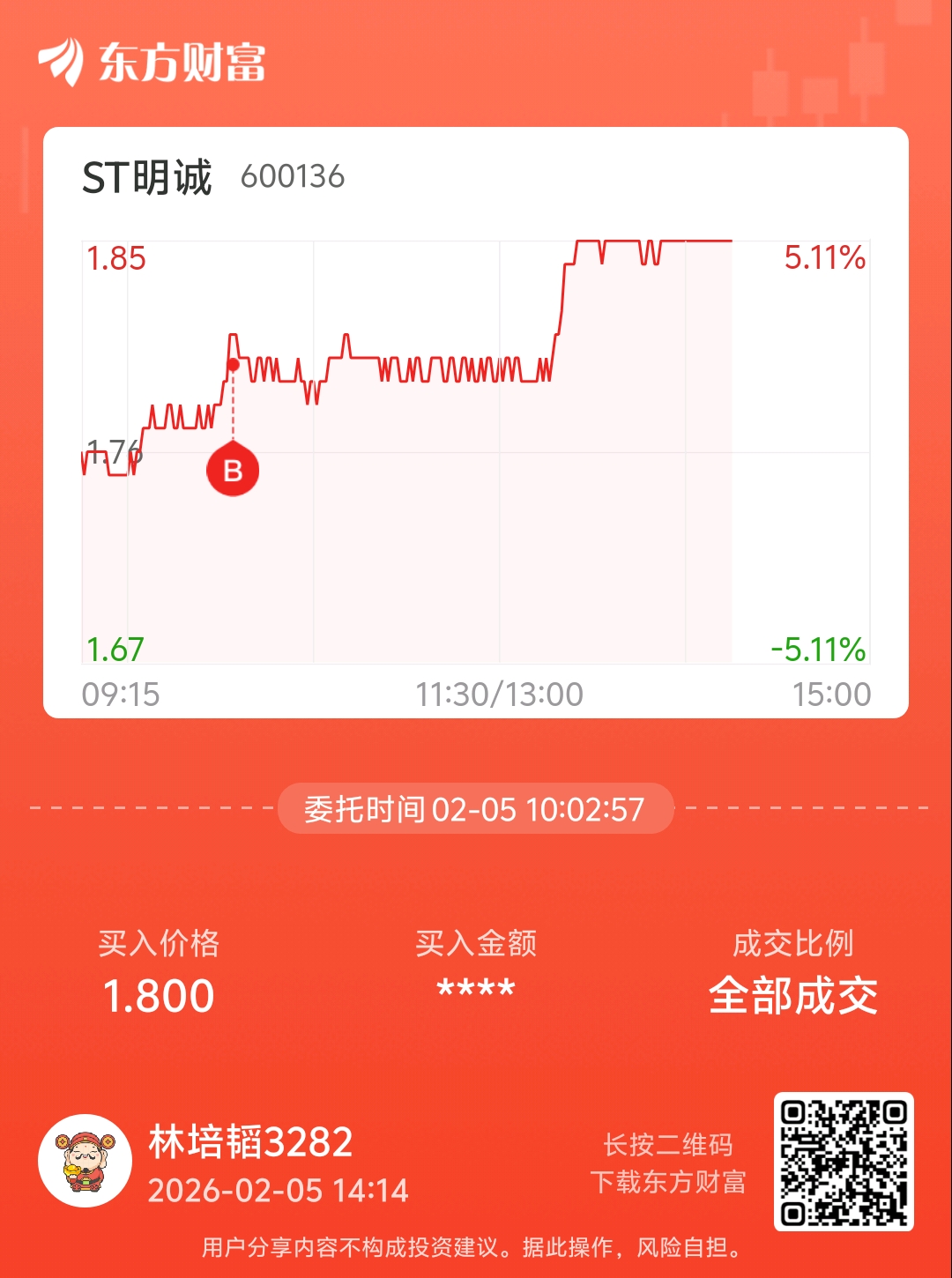 温馨提示: 1.根据《证券法》规定,禁止编造、传播虚假信息或者误导性信息,扰乱证券市场;2.用户在本社区发表的所有资料、言论等仅代表个人观点,与本网站立场无关,不对您构成任何投资建议。用户应基于自己的独立判断,自行决定证券投资并承担相应风险。《东方财富社区管理规定》