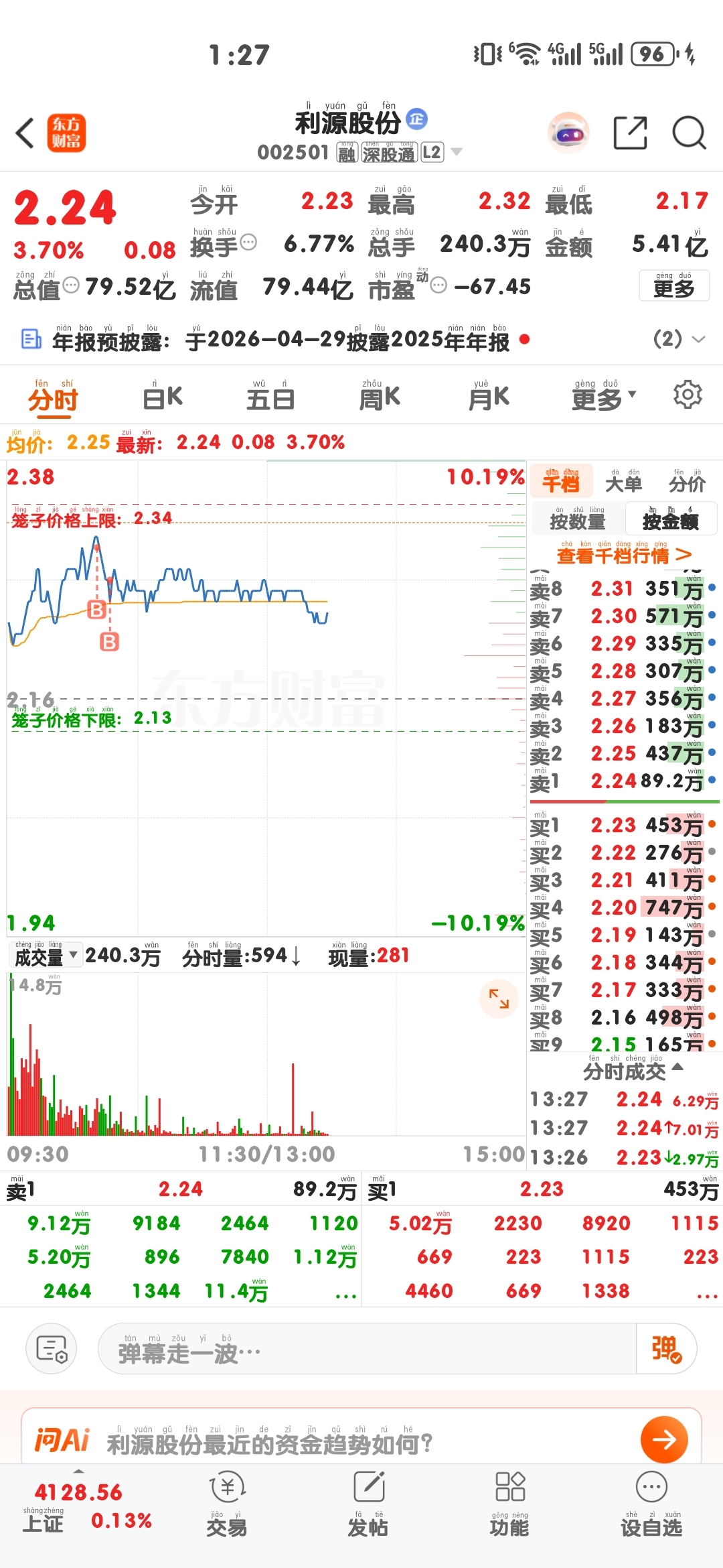 $利源股份(SZ002501)$ 不好意思,我买崩的