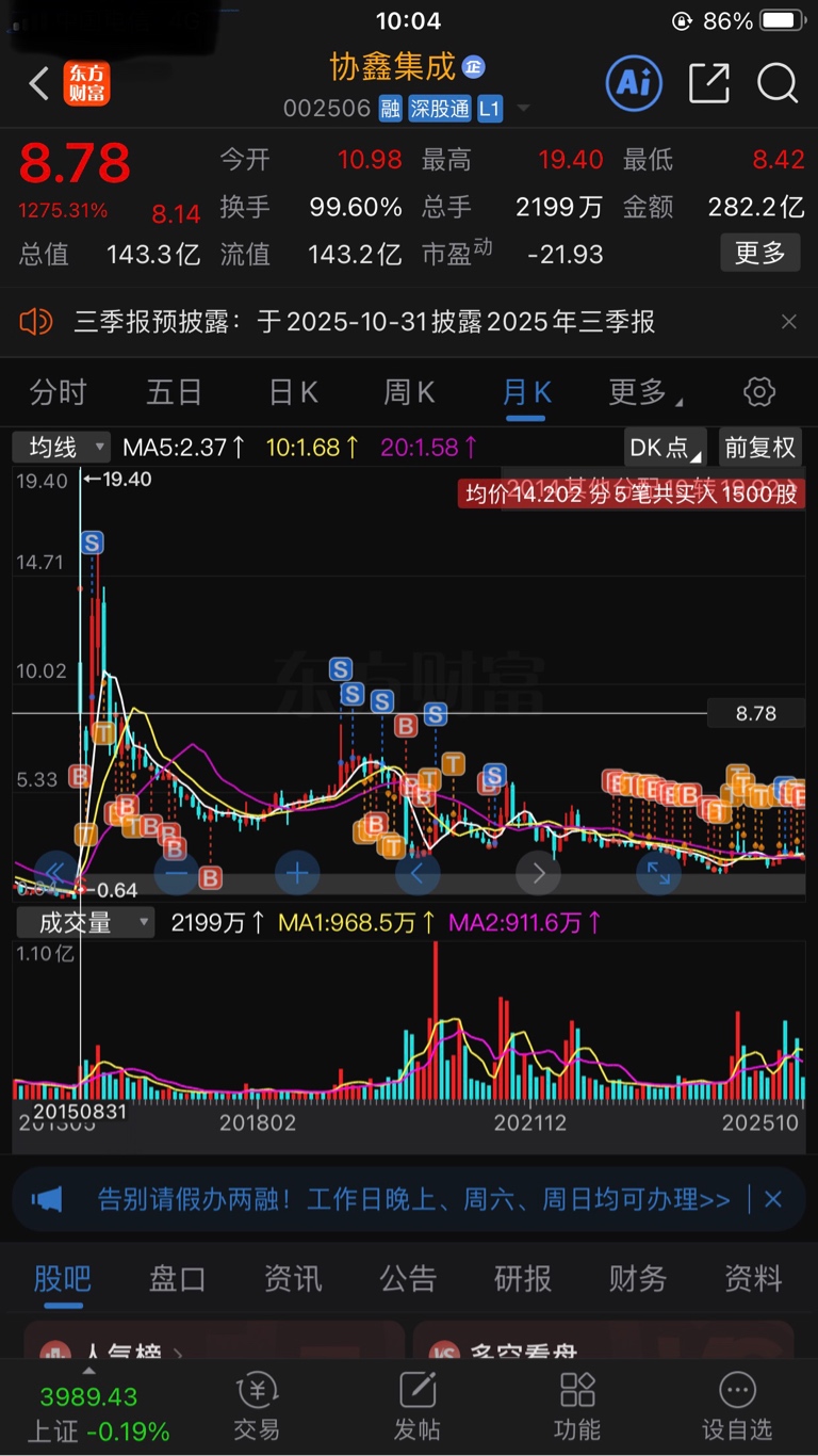 $协鑫集成(SZ002506)$ 还有十个涨停就回本,2015年下的光伏板订单请择机送货,地址在月亮背面东经188.8,北纬168.9等你的光伏板送货上门。