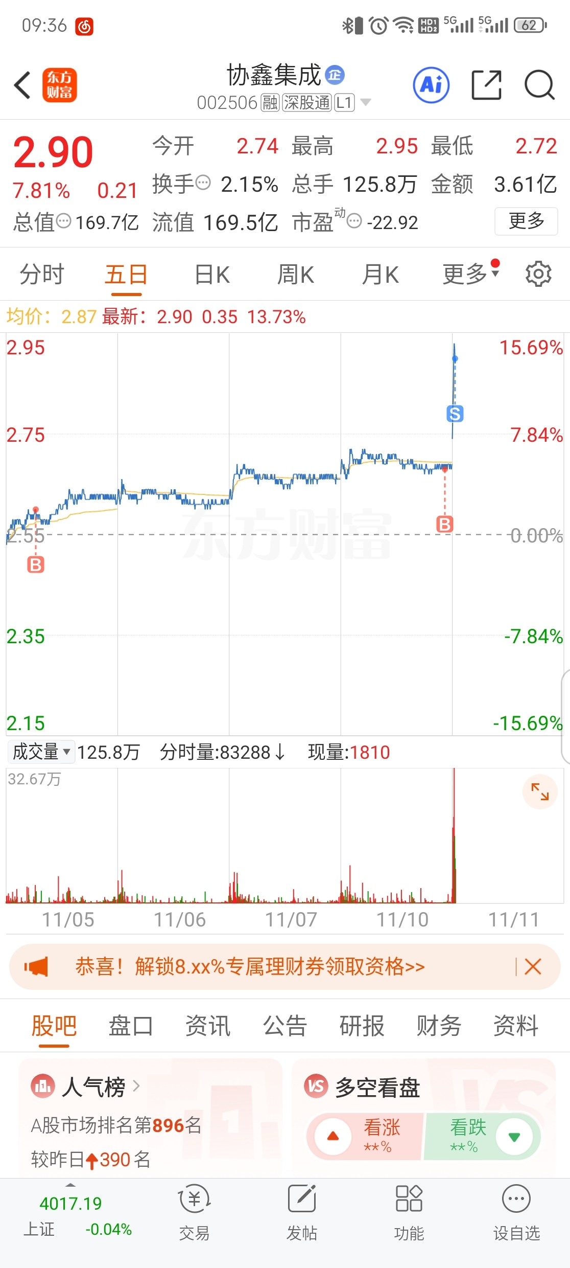 $协鑫集成(SZ002506)$ 薅点羊毛