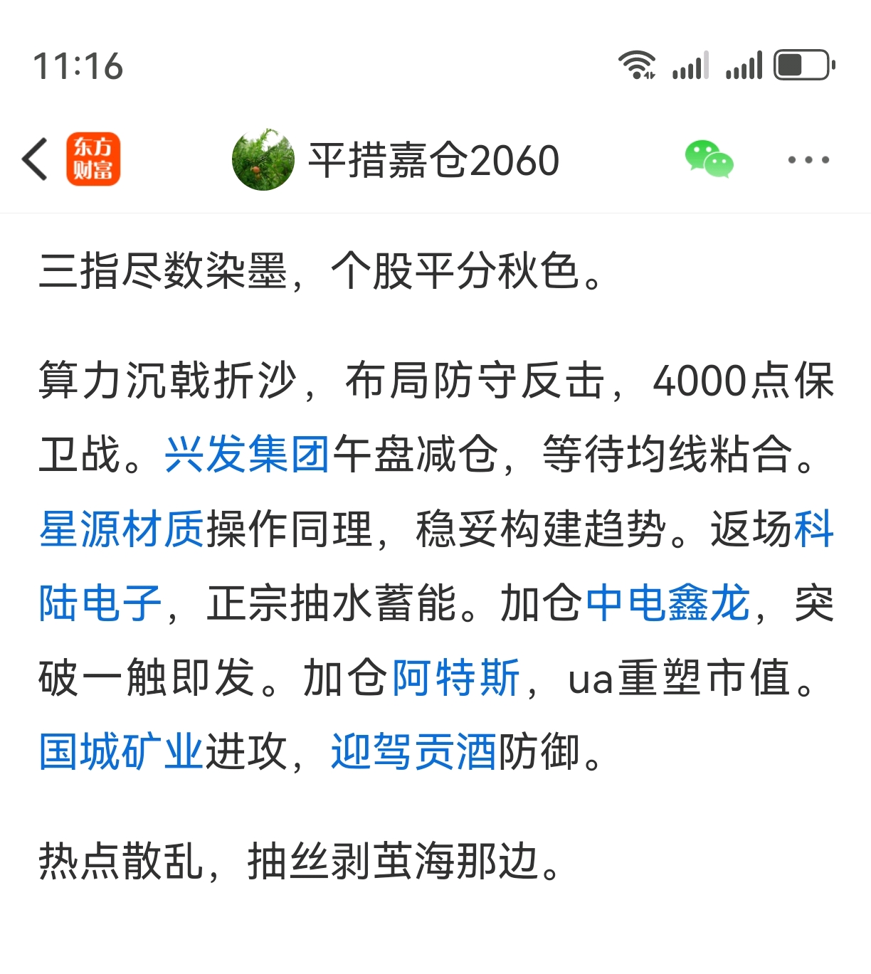 昨天算力率先,今日全面砸盘。总体紧缩仓位,全面进入防御。持有迎驾贡酒,权且当做压舱。止盈兴发集团,减仓星源材质。止盈国城矿业,止损科陆电子。开盘减仓阿特斯,回落承接宝泰隆。落袋中电鑫龙,开仓协鑫集成,进场拓日新能。