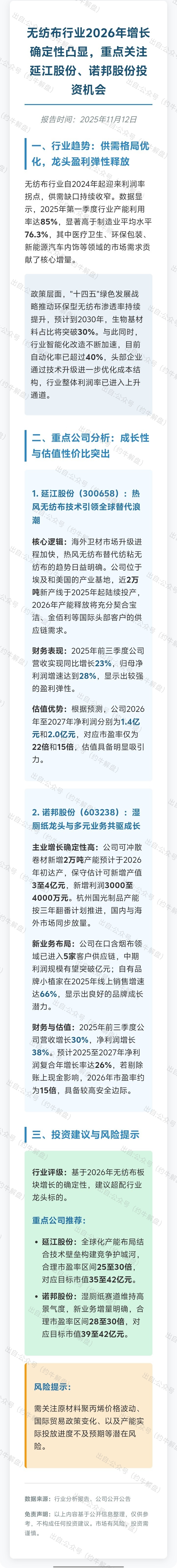 无纺布行业2026年增长确定性凸显,聚焦龙头企业的成长与估值修复机会