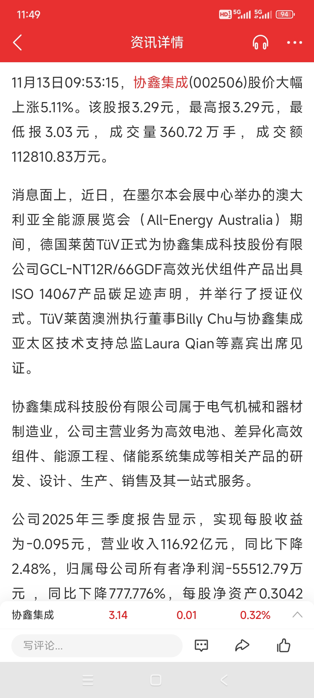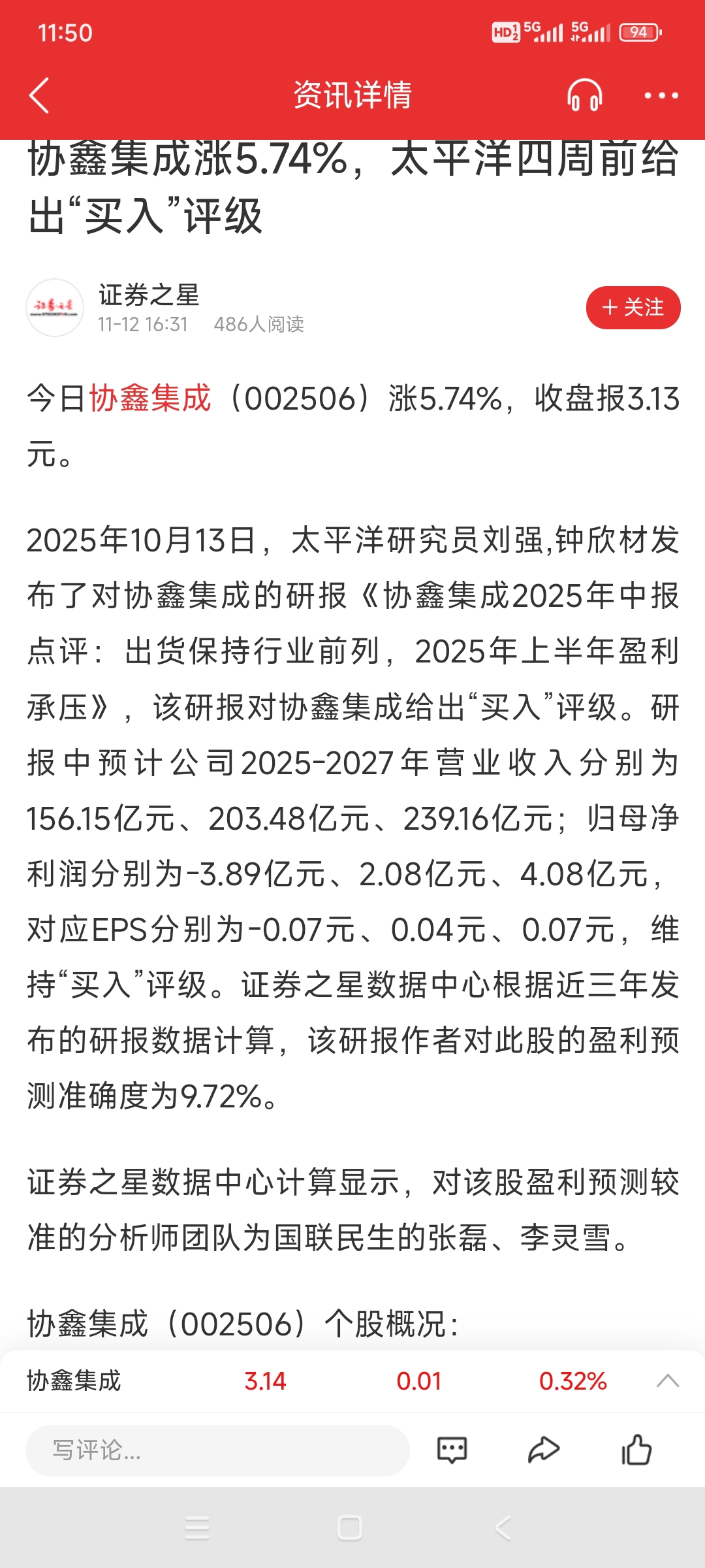 $协鑫集成(SZ002506)$ 下午会不会涨停