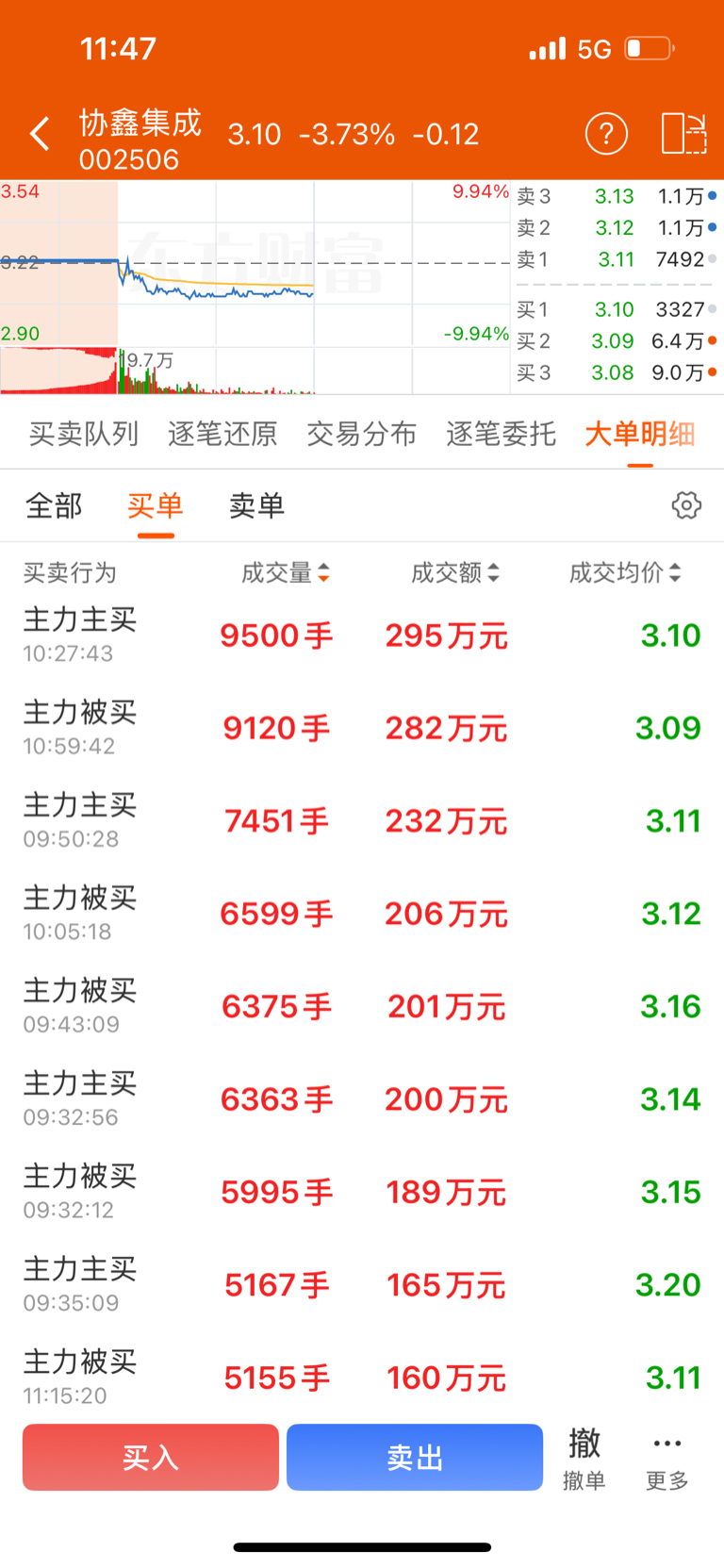 $协鑫集成(SZ002506)$ 哥们儿我就想问问你不主动买吸的到吗?要不按跌停算了这样我们也多拿点。玩不起就把位置让开