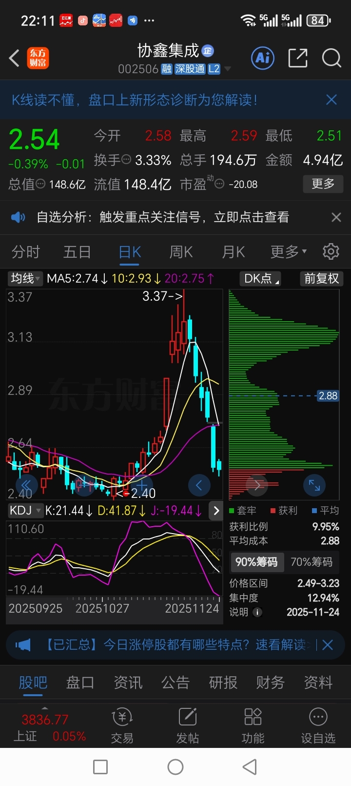 ,平均成本2.9多
