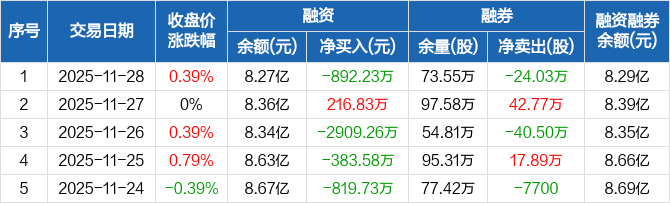 协鑫集成:融资净偿还892.23万元,融资余额8.27亿元(11-28)