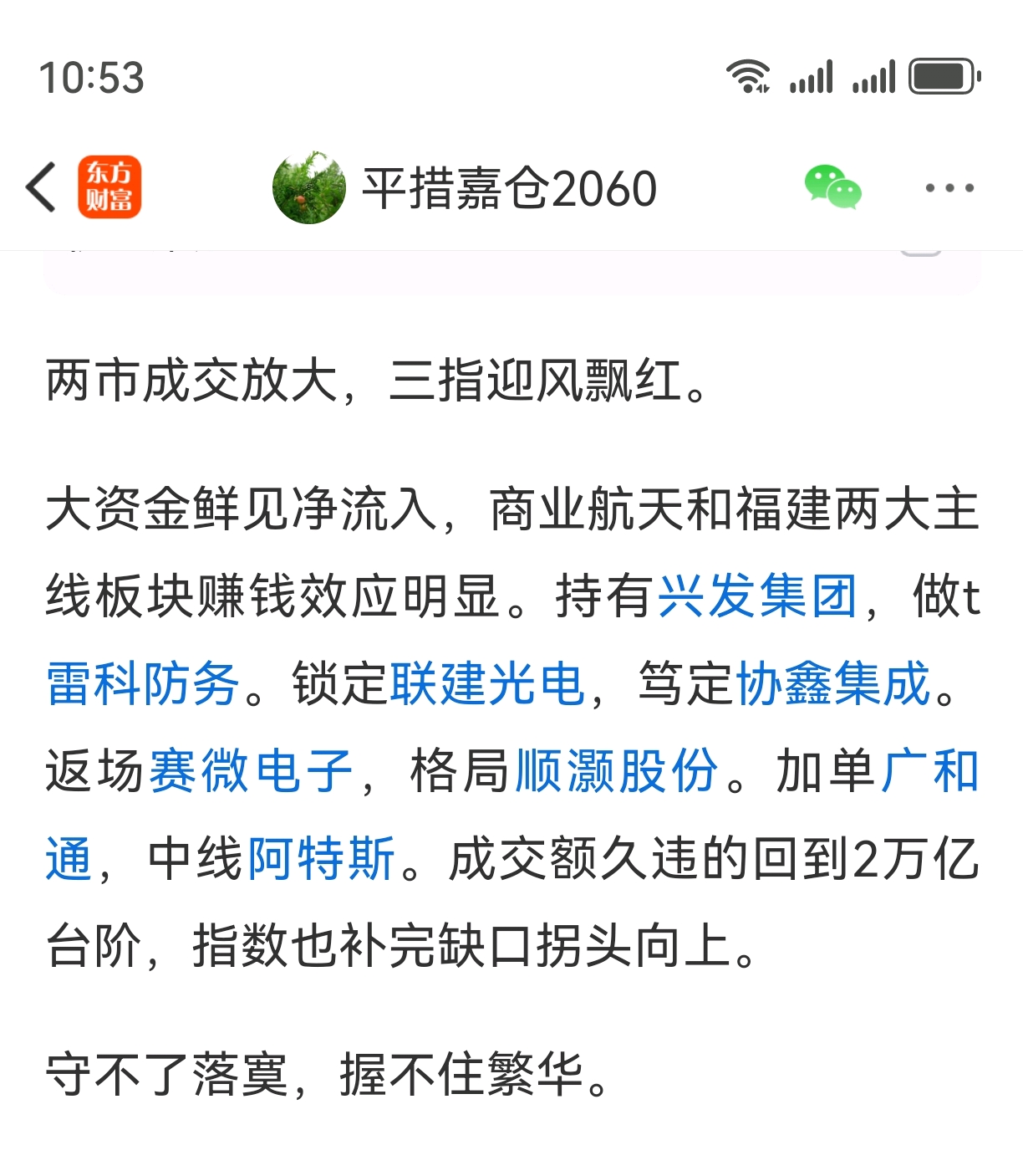 两市成交还在,午盘再开新仓。