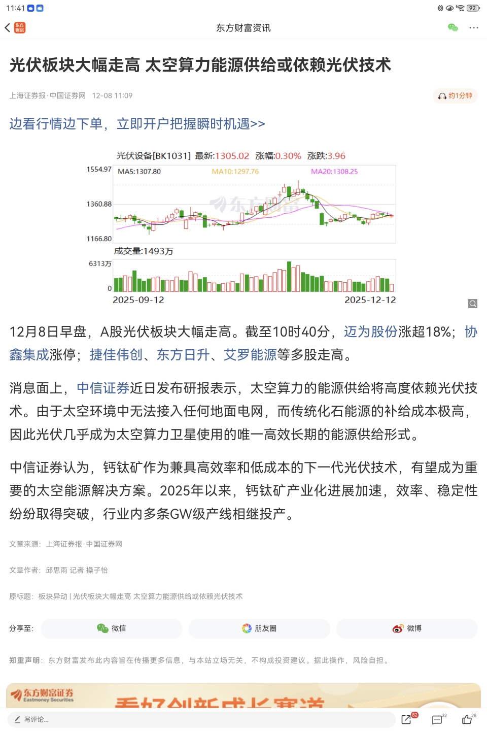 $协鑫集成(SZ002506)$ 钙钛矿电池,天空算力,今天的发射成功就起飞。