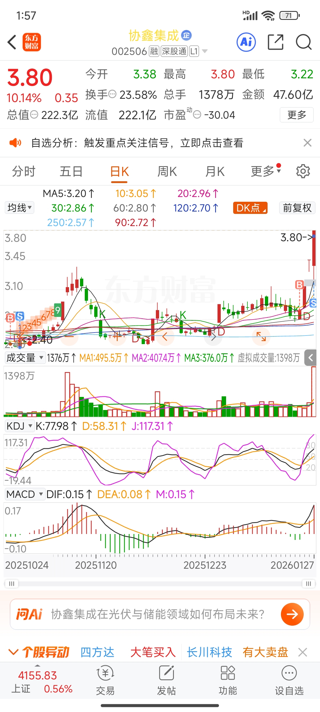 $协鑫集成(SZ002506)$ 我不吹牛。昨天榜一(今天的榜五)承接抛压今天低开必定拉升出货。所以我先跟着走。原因就是今天给散户低位进场机会了。主力洗盘风格就是把今天所有获利盘的散户全部不赚钱让他们走。所以我会在某天某个位置进场做二波。散户进场没好事定会要洗出去。并且今天就算低位进的也得亏钱或者不赚钱走