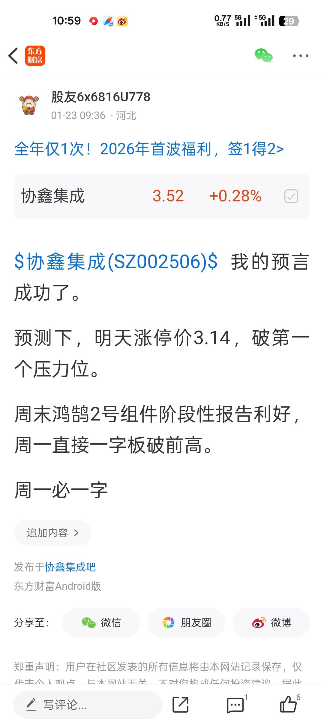 温馨提示: 1.根据《证券法》规定,禁止编造、传播虚假信息或者误导性信息,扰乱证券市场;2.用户在本社区发表的所有资料、言论等仅代表个人观点,与本网站立场无关,不对您构成任何投资建议。用户应基于自己的独立判断,自行决定证券投资并承担相应风险。《东方财富社区管理规定》