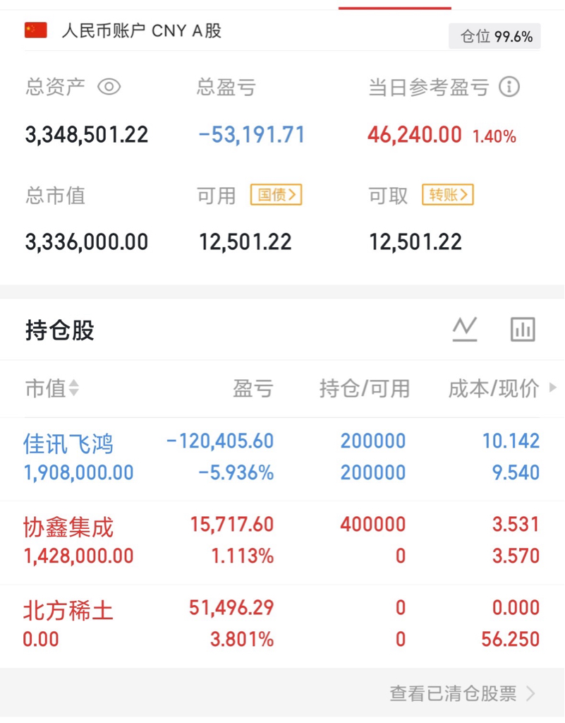 兄弟们,中午收盘了。北方稀土今天走卖飞了没走的来报个到刚刚换了协鑫集成收到回复6