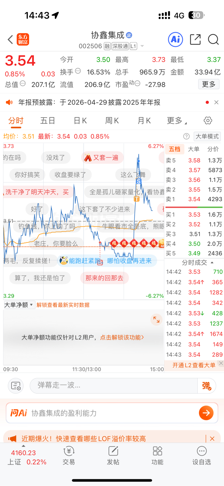温馨提示: 1.根据《证券法》规定,禁止编造、传播虚假信息或者误导性信息,扰乱证券市场;2.用户在本社区发表的所有资料、言论等仅代表个人观点,与本网站立场无关,不对您构成任何投资建议。用户应基于自己的独立判断,自行决定证券投资并承担相应风险。《东方财富社区管理规定》