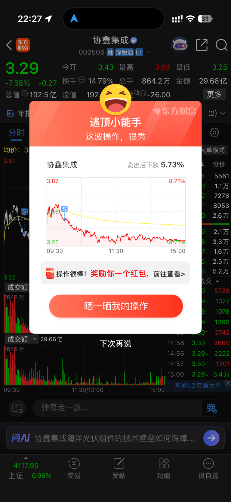 $协鑫集成(SZ002506)$ 跌回三块接