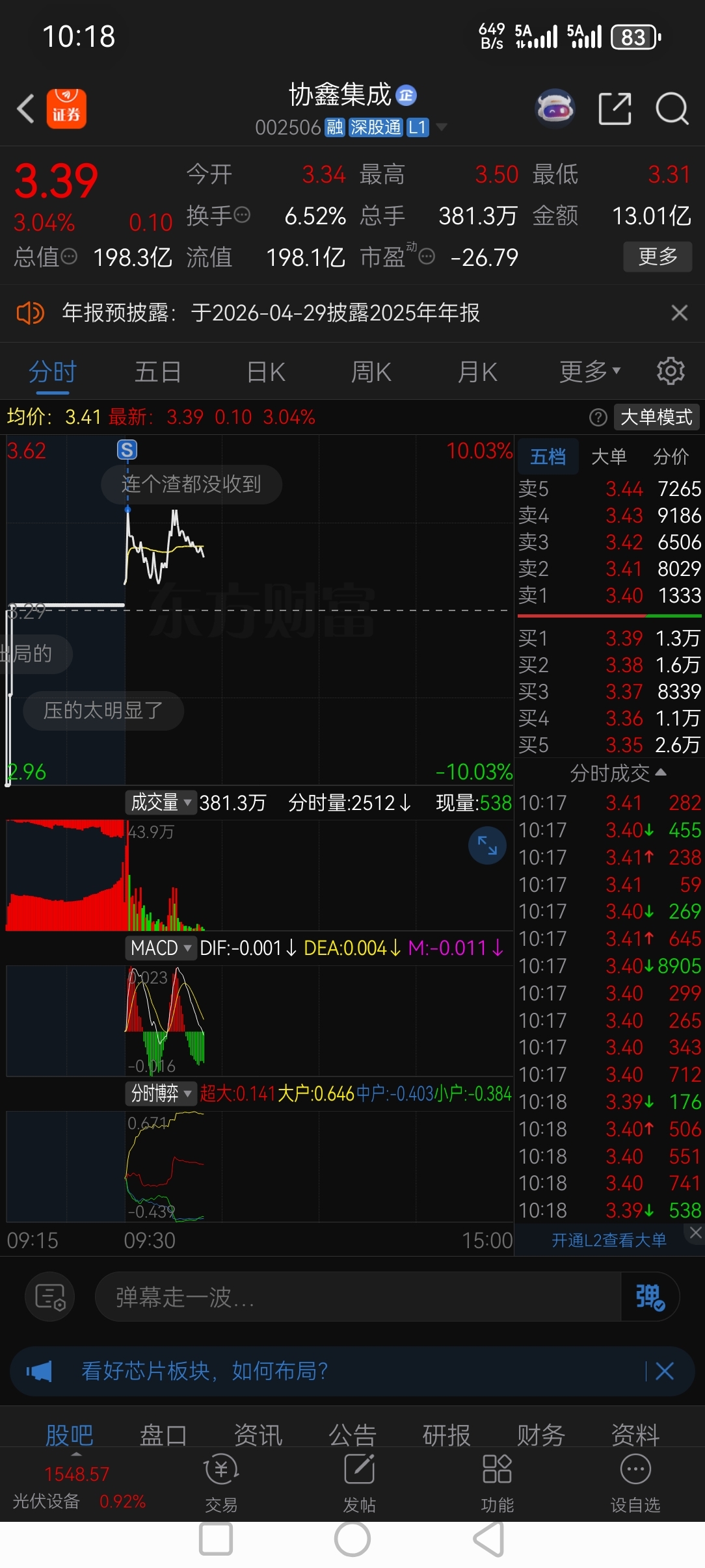 温馨提示: 1.根据《证券法》规定,禁止编造、传播虚假信息或者误导性信息,扰乱证券市场;2.用户在本社区发表的所有资料、言论等仅代表个人观点,与本网站立场无关,不对您构成任何投资建议。用户应基于自己的独立判断,自行决定证券投资并承担相应风险。《东方财富社区管理规定》