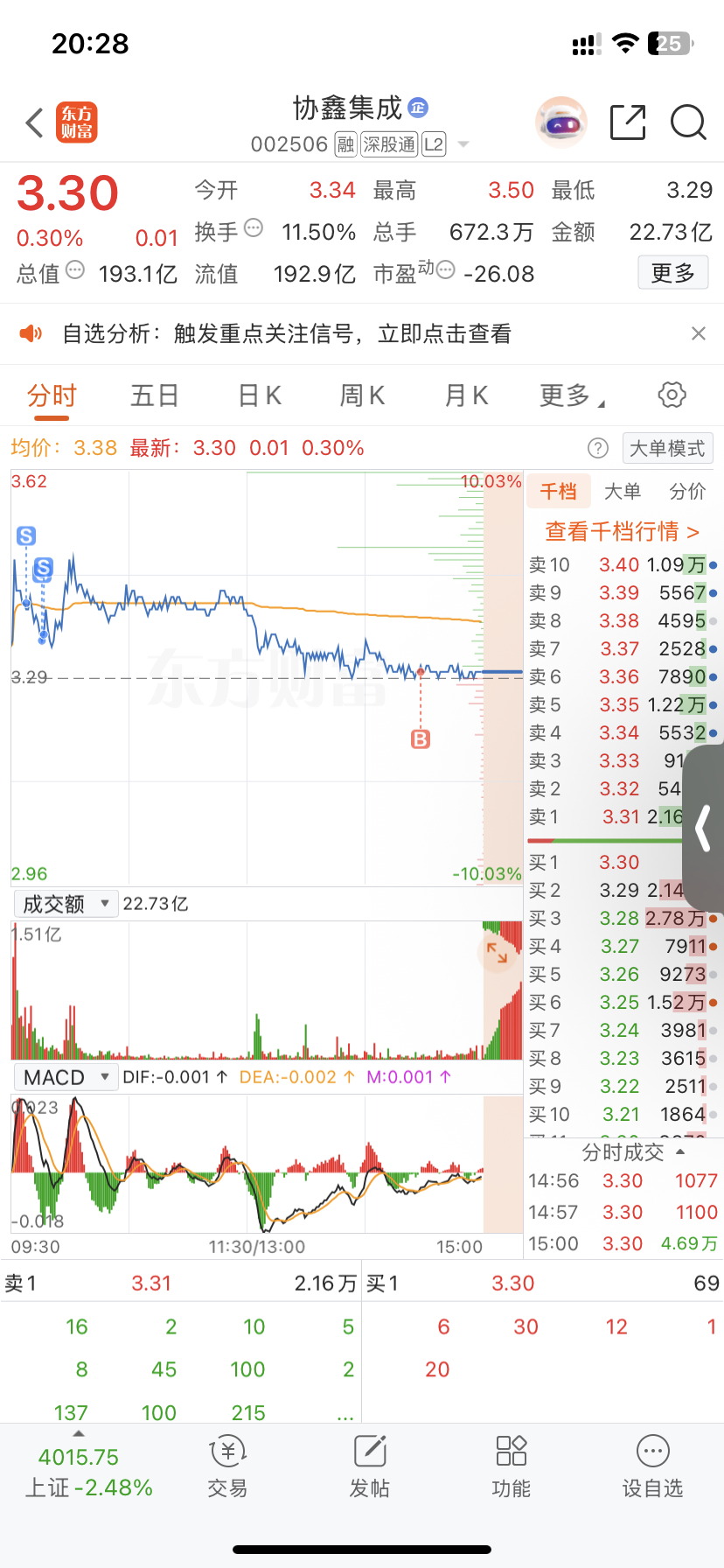$协鑫集成(SZ002506)$ 跟着主力做T就对了