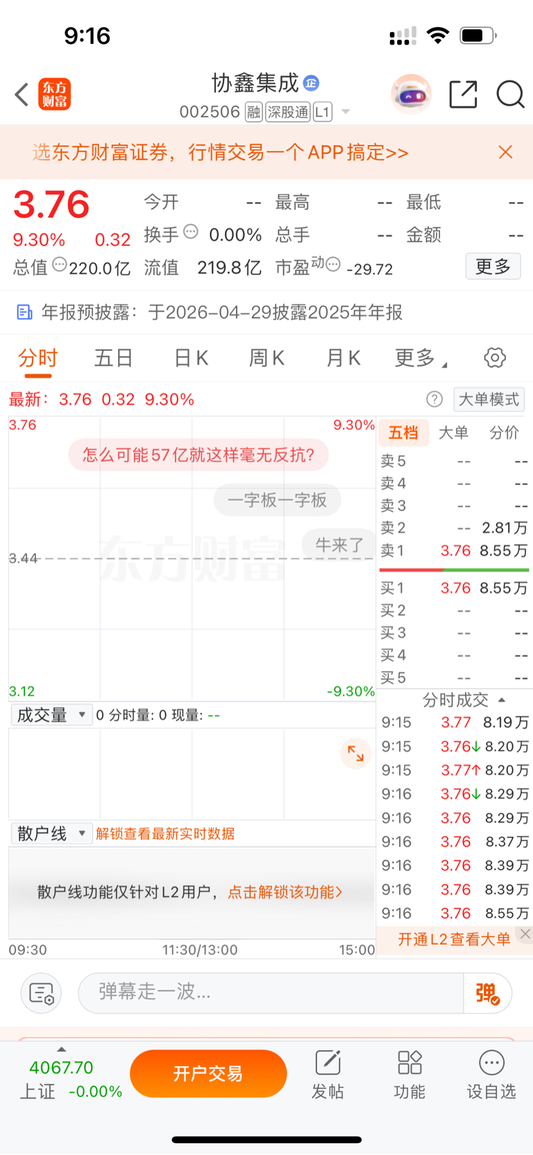 $协鑫集成(SZ002506)$ 今天竞价就已经涨停板吸筹了?