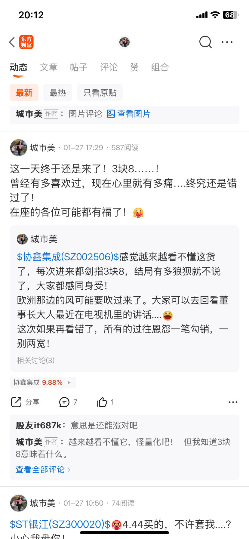 温馨提示: 1.根据《证券法》规定,禁止编造、传播虚假信息或者误导性信息,扰乱证券市场;2.用户在本社区发表的所有资料、言论等仅代表个人观点,与本网站立场无关,不对您构成任何投资建议。用户应基于自己的独立判断,自行决定证券投资并承担相应风险。《东方财富社区管理规定》